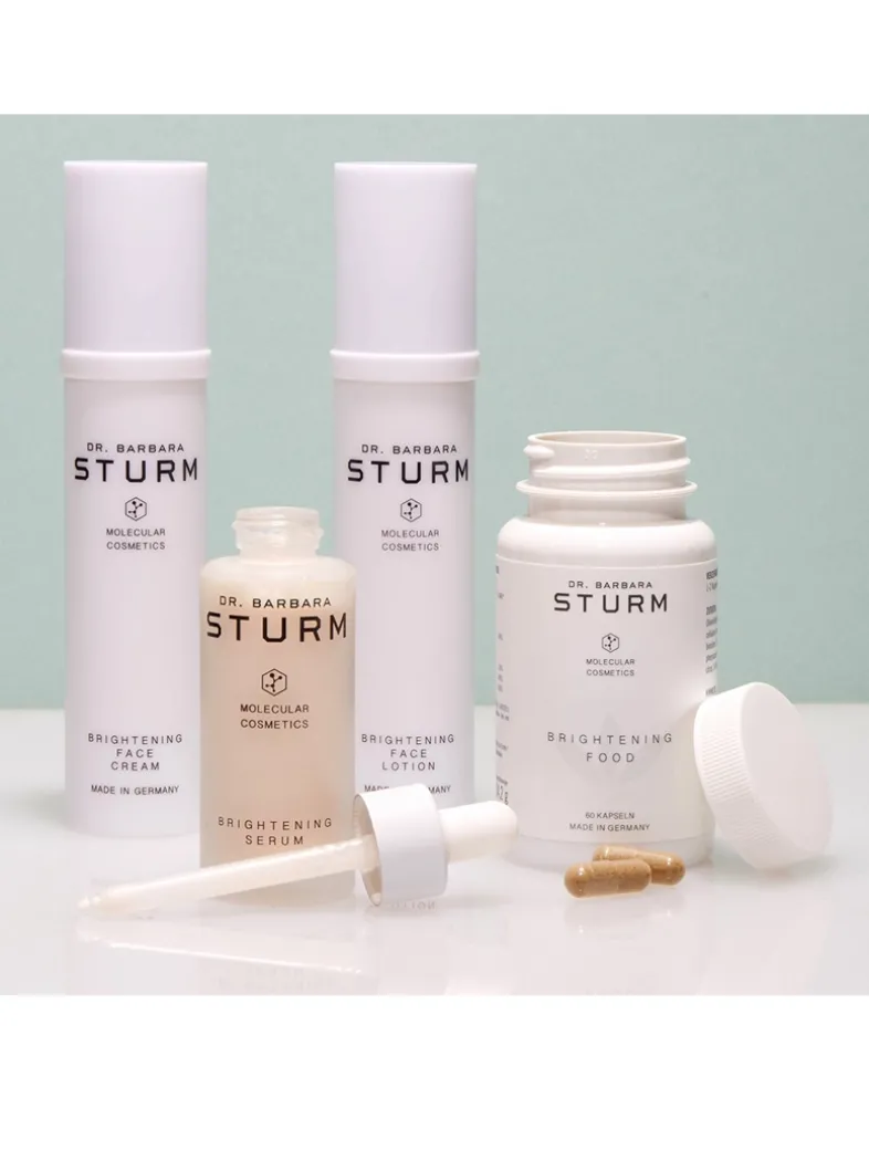 The Brightening Face Cream is a 24-hour moisturizer that helps to even out skin tone and gradually minimize visible signs of pigmentation. A special extract of Cress Sprouts helps brighten the skin and diminish uneven skin tone. Hyaluronic Acid provides intensive moisture and Ginseng Extract supports the skin’s protection against free radicals and environmental stressors. Vitamin E provides anti-oxidative protection for glowing, more even-looking skin. Light-reflecting mineral pigments provide an instant glow to the complexion.
