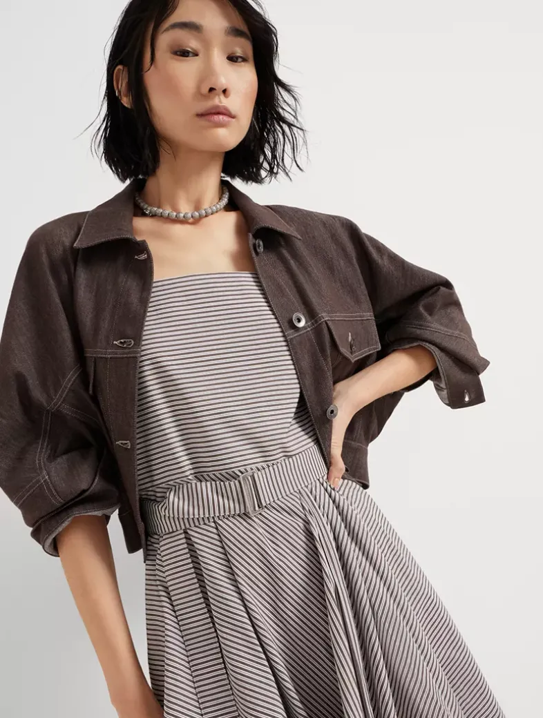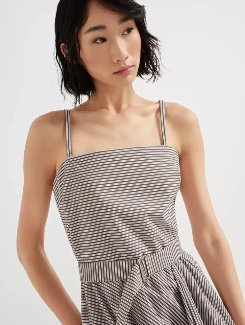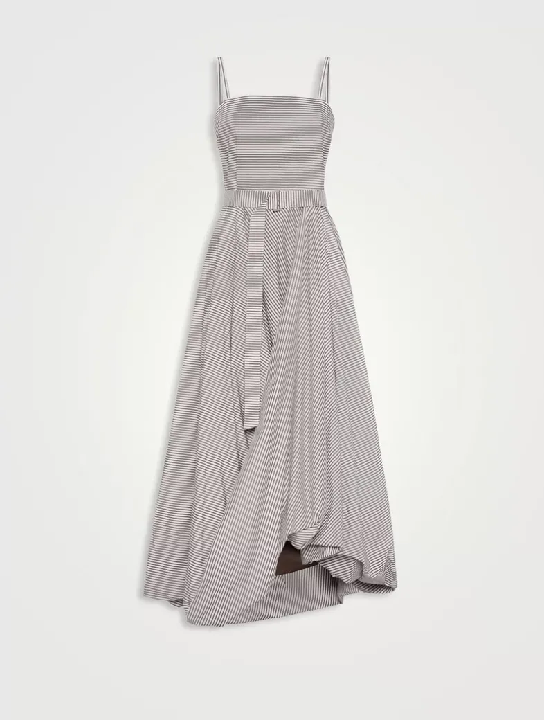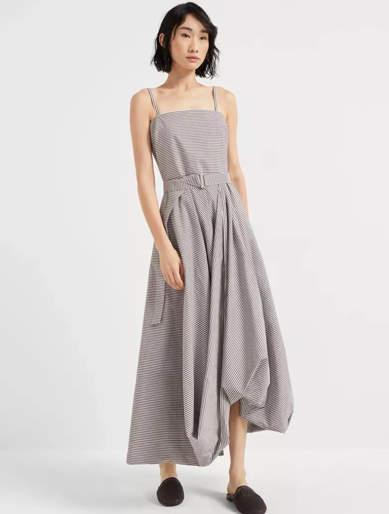 Multi-stripe cotton poplin belted bubble hem dress