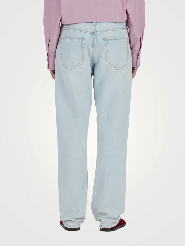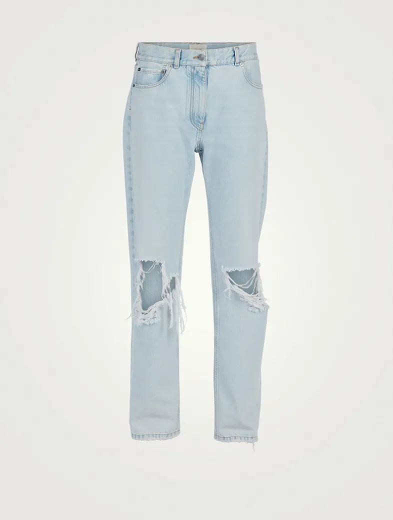 Cut with a straight-leg silhouette, these boyfriend jeans are designed with a washed finish for distressed worn-in feel. Crafted in bleached Italian denim, these boyfriend jeans are completed with tonal topstitching, and a classic five-pocket construction.