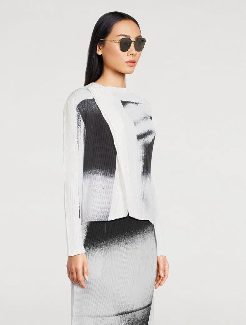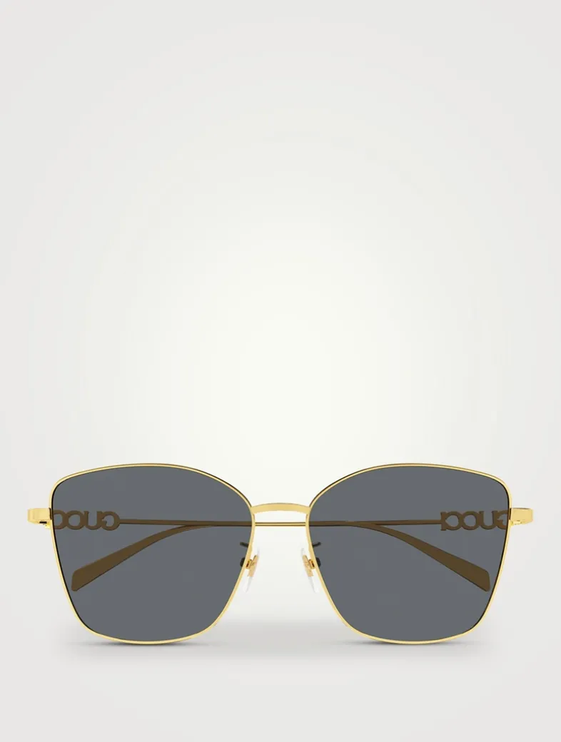 Defined by a flattering butterfly shape, these sunglasses feature sleek metal temples with a cut-out logo for a modern, signature touch.