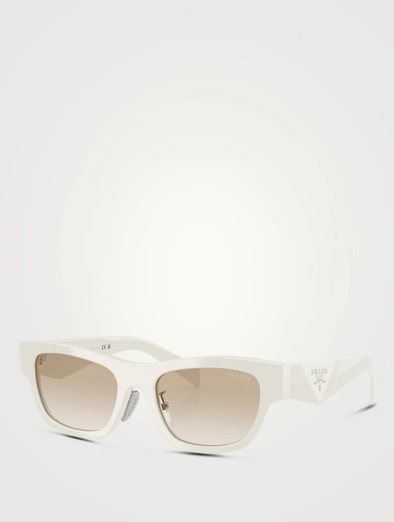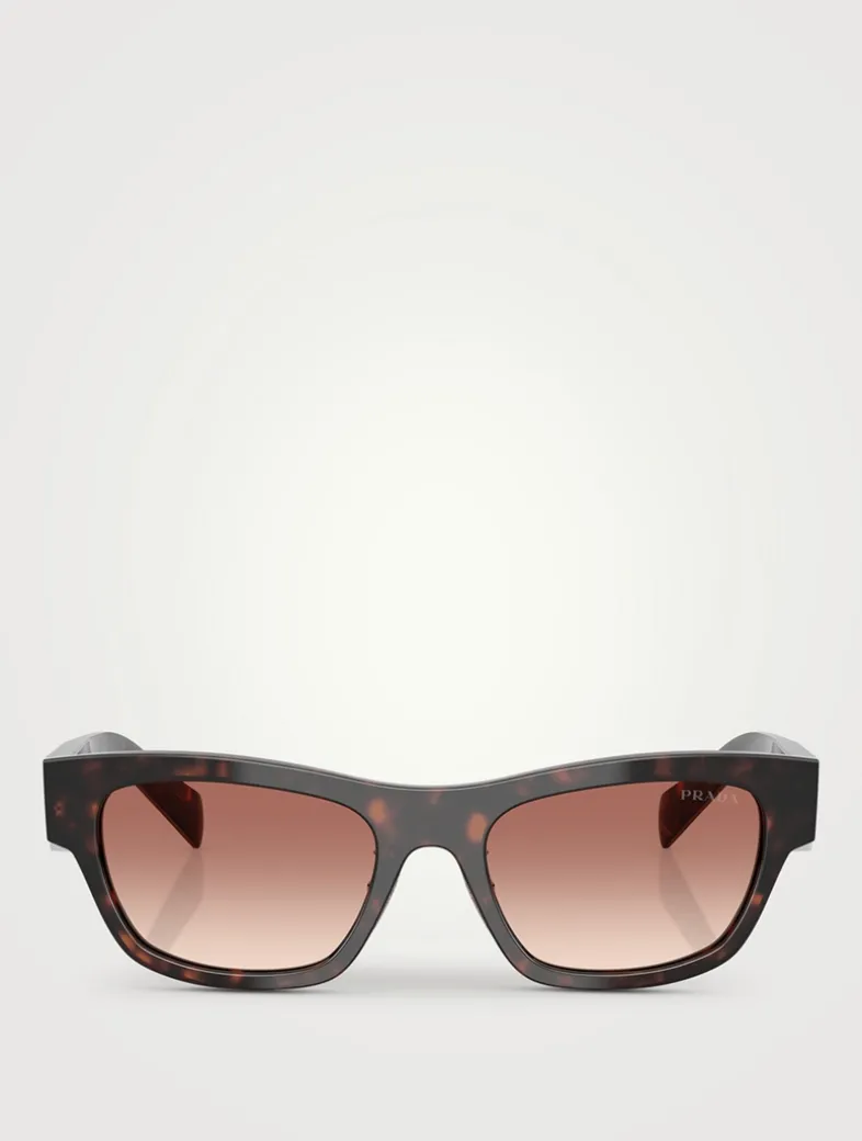 The triangle has become an integral part of Prada’s legacy. In countless different and innovative ways, Symbole eyewear highlights this iconic shape and logo. This style, featuring a flattering butterfly frame, is designed with a distinctly feminine touch. Geometric triangle temples adorned with the Prada logo complete the look. RX-able.