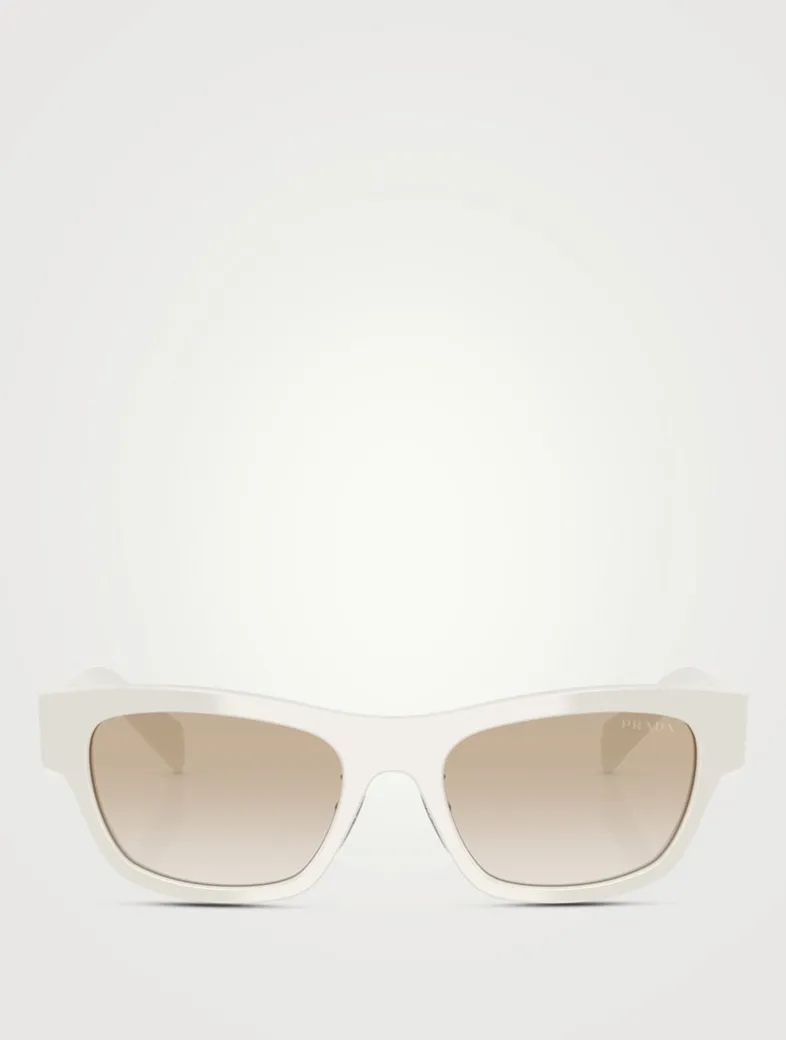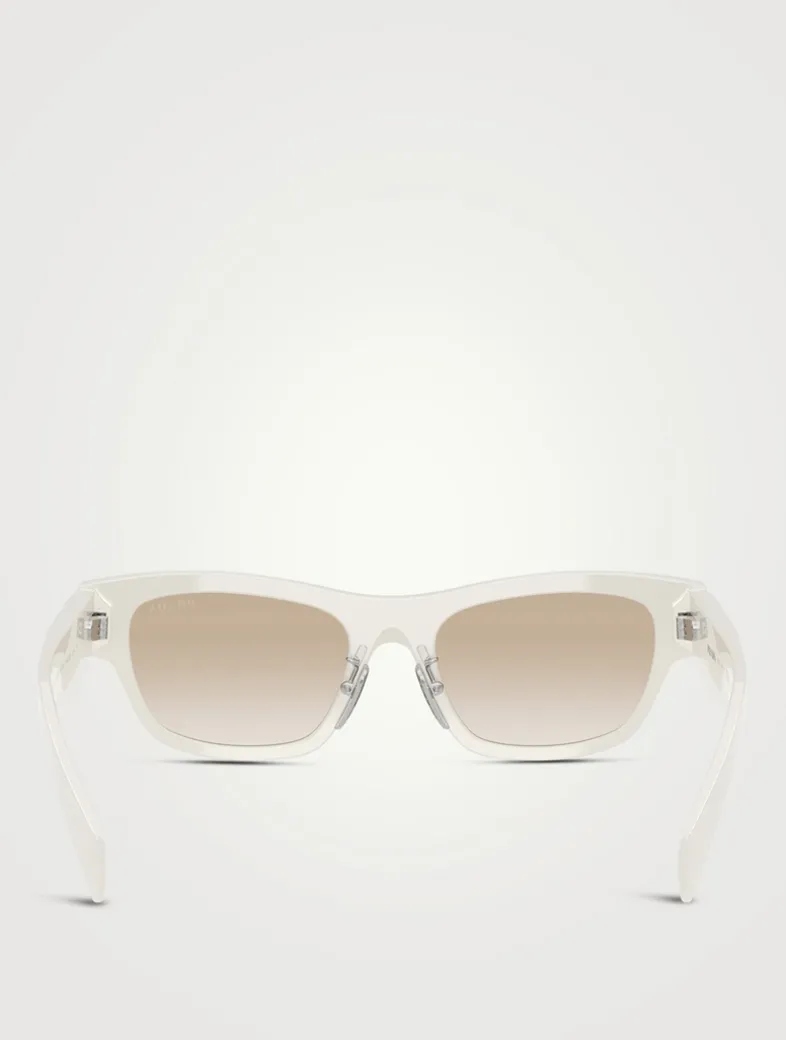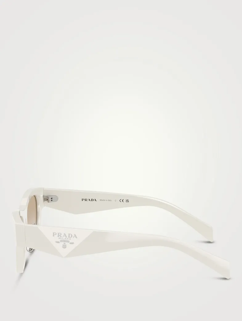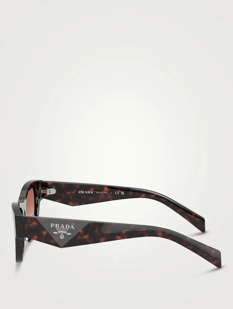 The triangle has become an integral part of Prada’s legacy. In countless different and innovative ways, Symbole eyewear highlights this iconic shape and logo. This style, featuring a flattering butterfly frame, is designed with a distinctly feminine touch. Geometric triangle temples adorned with the Prada logo complete the look. RX-able.