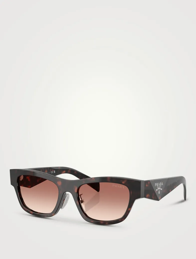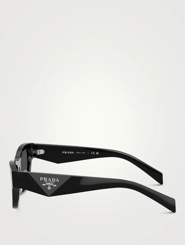 The triangle has become an integral part of Prada’s legacy. In countless different and innovative ways, Symbole eyewear highlights this iconic shape and logo. This style, featuring a flattering butterfly frame, is designed with a distinctly feminine touch. Geometric triangle temples adorned with the Prada logo complete the look. RX-able.