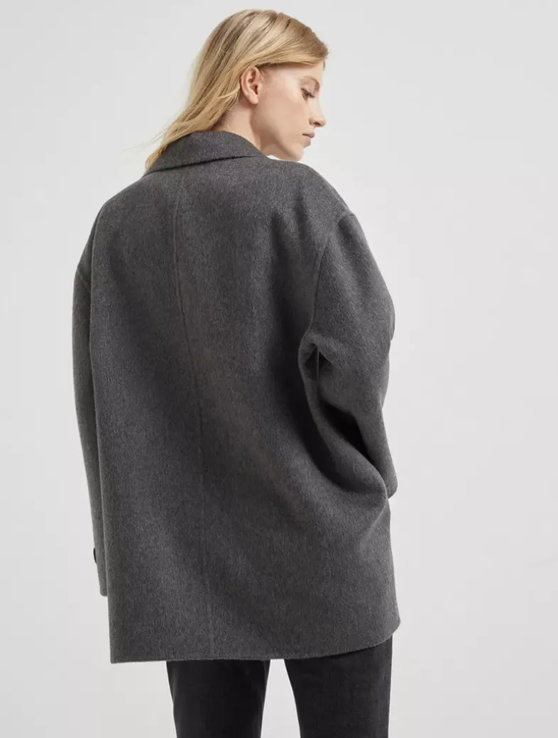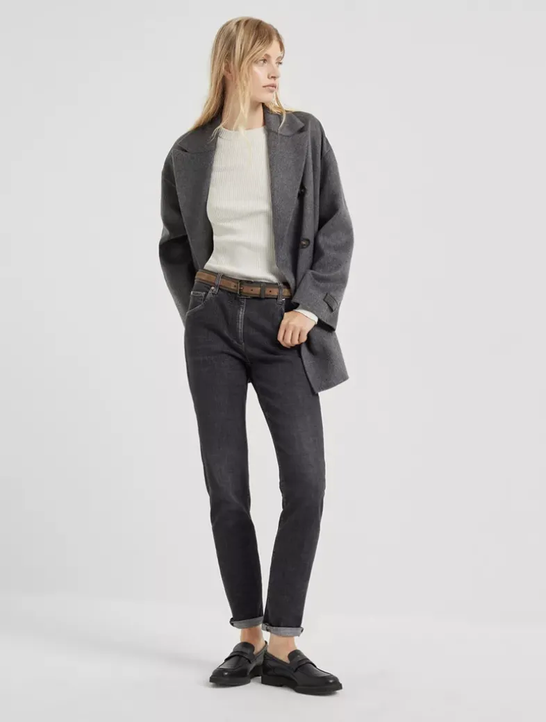 Hand-crafted cashmere double beaver cloth pea coat with Precious patch