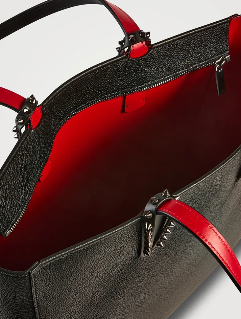 With its supple construction, the Cabata zipped tote showcases Maison Christian Louboutin’s savoir faire. This model features the hallmarks of the iconic Cabata tote: signature spikes encircling the handles and Loubi red lining. It is crafted in grained calf leather and fastens with a zip.