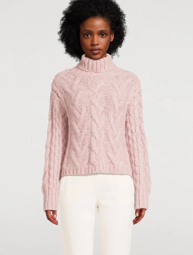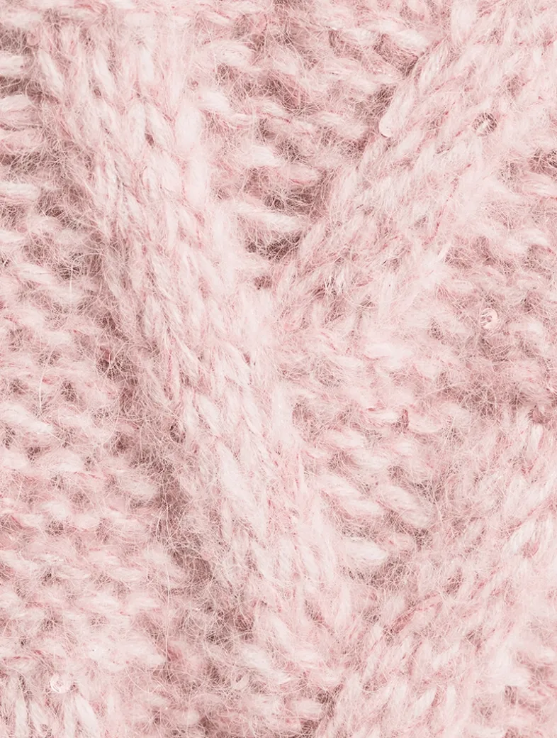 This jumper is crafted from an exclusive alpaca and wool blend, enriched with a matching sequin insert. Made with gauge-3 yarn, this pullover offers exceptional warmth while the sequins woven into the yarn add a touch of sparkle.