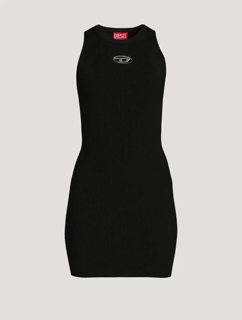 This Diesel mini is designed in a ribbed knit that shapes the body. The cut-out detail metal logo on the front keeps the look urban and modern.