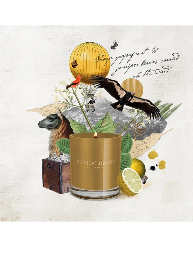 The Andes rise and fall like a breath of moss and spice. In the distance, juniper lulls the bitter winds. A promise of rose and grapefruit as fresh tonic awaits. A scented candle to stay grounded.