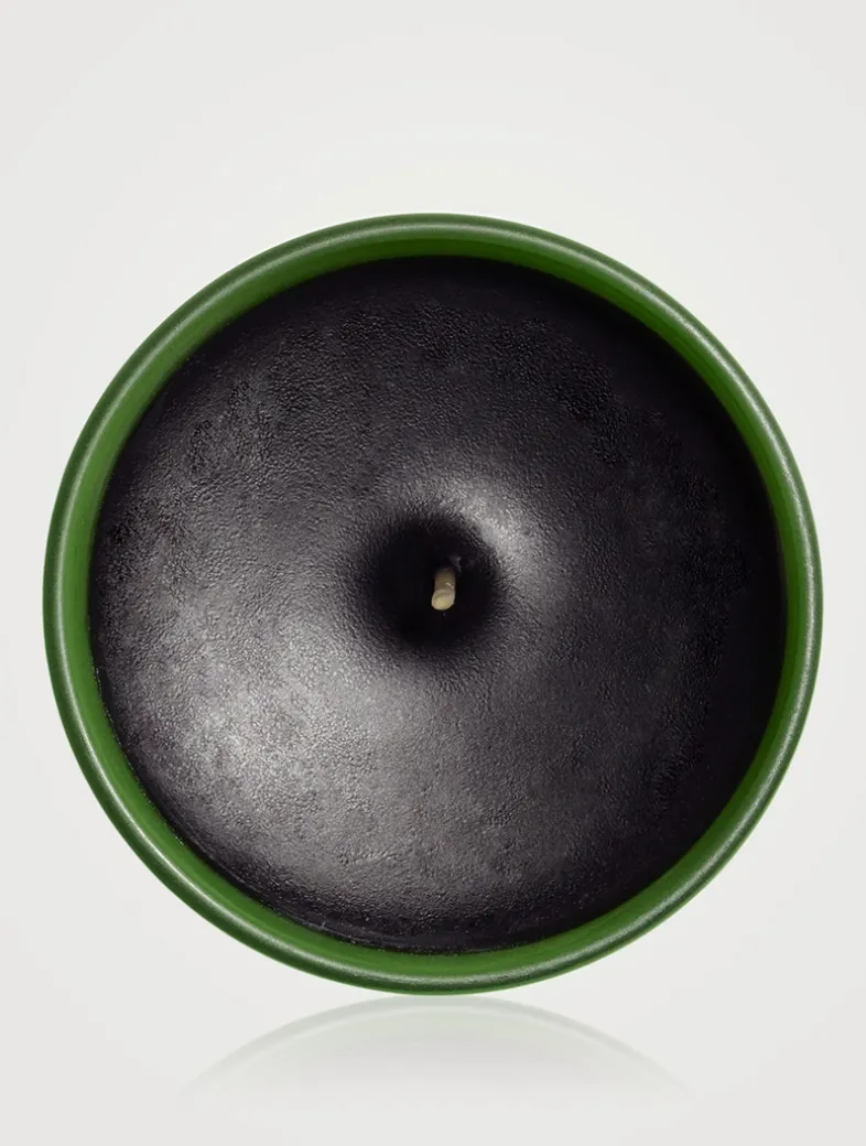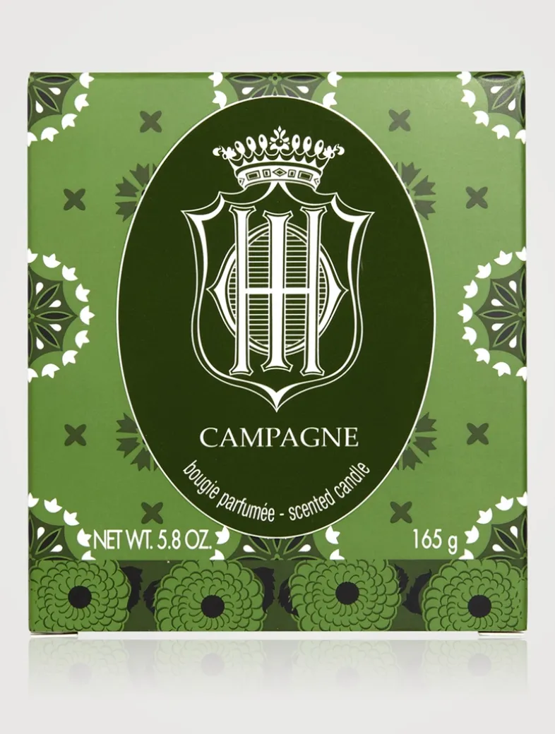 Inspired by the iconic Eau de Campagne collection, the Campagne candle is a concentration of nature with an elegant and bold essence that retains a spa-like quality. In its forest green lacquered glass, the scented candle reveals an intense black paraffin wax with three cotton wicks.