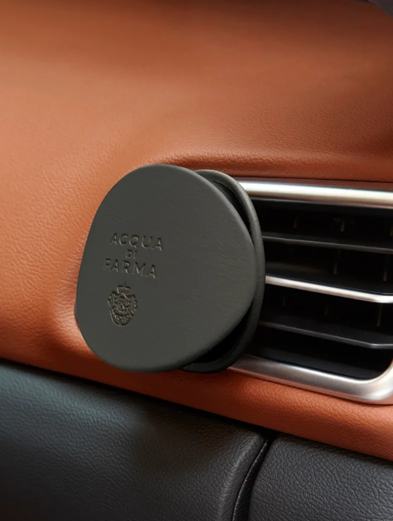 ACQUA DI PARMA meets POLTRONA FRAU, a symbol of leather knowhow, research and design. Together, they now present the Car Diffuser, an object of design conceived in every detail by the award-winning design duo GamFratesi, to offer an enveloping multisensory experience and transform every trip into an unparalleled experience. The PELLE FRAU® Leather which encloses the object ensures optimal technical performances inside your vehicle, and is exceptionally beautiful and soft.