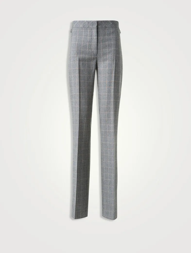 These elegant menswear-inspired trousers are crafted from a plaid fabric. The classic straight-leg silhouette features practical side pockets and a clean, pocket-free back that is shaped with darts.