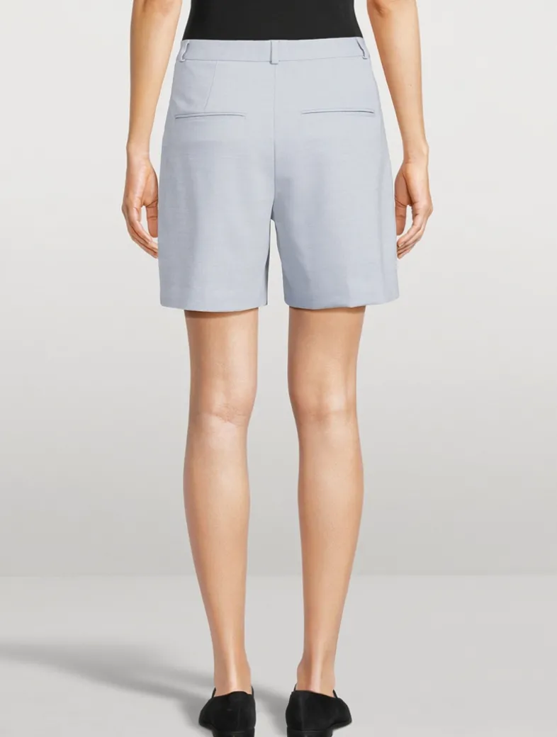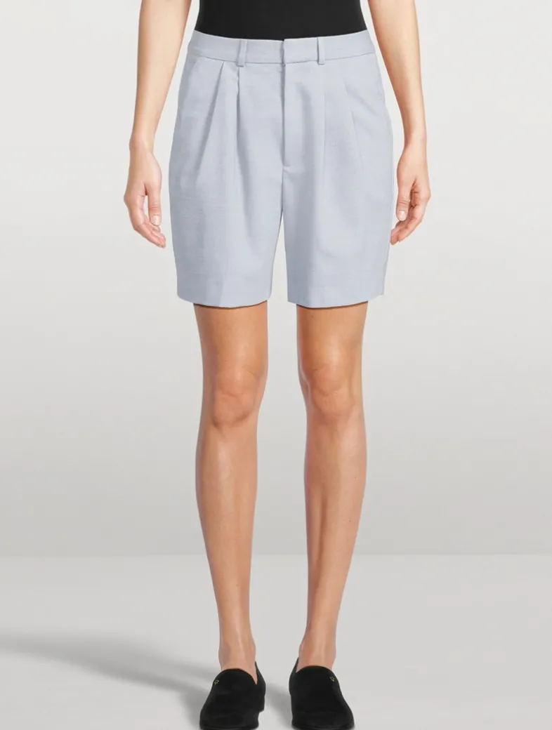The Carrie Short is a pleated, trouser-inspired bottom constructed from a midweight, textured suiting fabrication. This tailored style is fully lined and features five functional belt loops, two back welt pockets, slanted front pockets, and a single button zip-front closure.