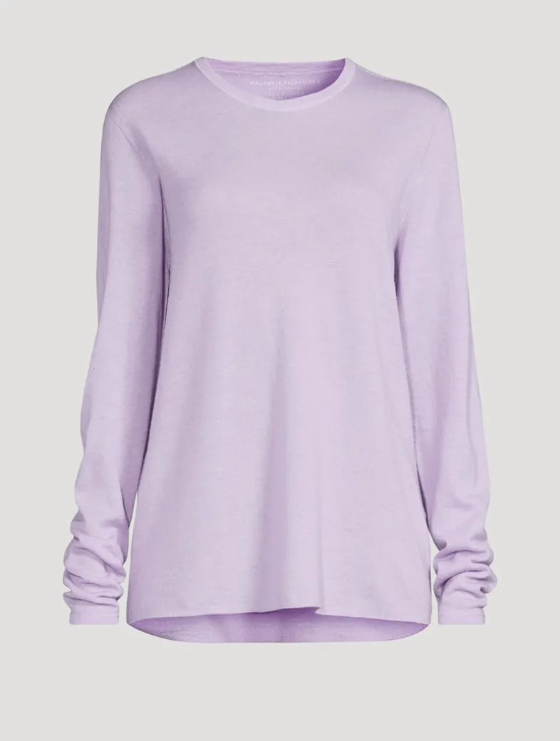 Handcrafted and produced in the brand’s factories in Italy, this long-sleeve T-shirt is knit from 100% machine washable cashmere. The light weight of the top works for every season.