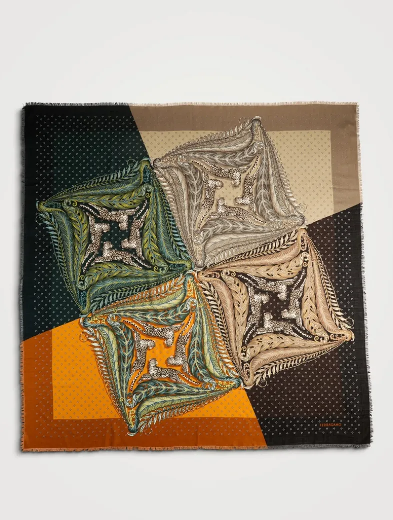 Luxuriously soft and perfect for transitional seasons, this Italian-crafted cashmere stole features a Madras print with foliage, micro tie motifs, and mini majestic jaguars.