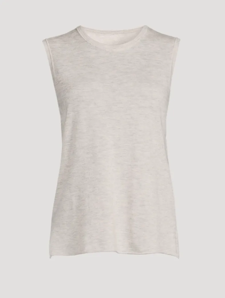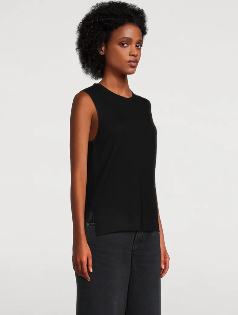 Crafted in Italy from a light-as-air cashmere, this sleeveless top is a minimalist essential that can be layered or worn on its own. It has a relaxed silhouette with a crew neckline and side slits at the hem.