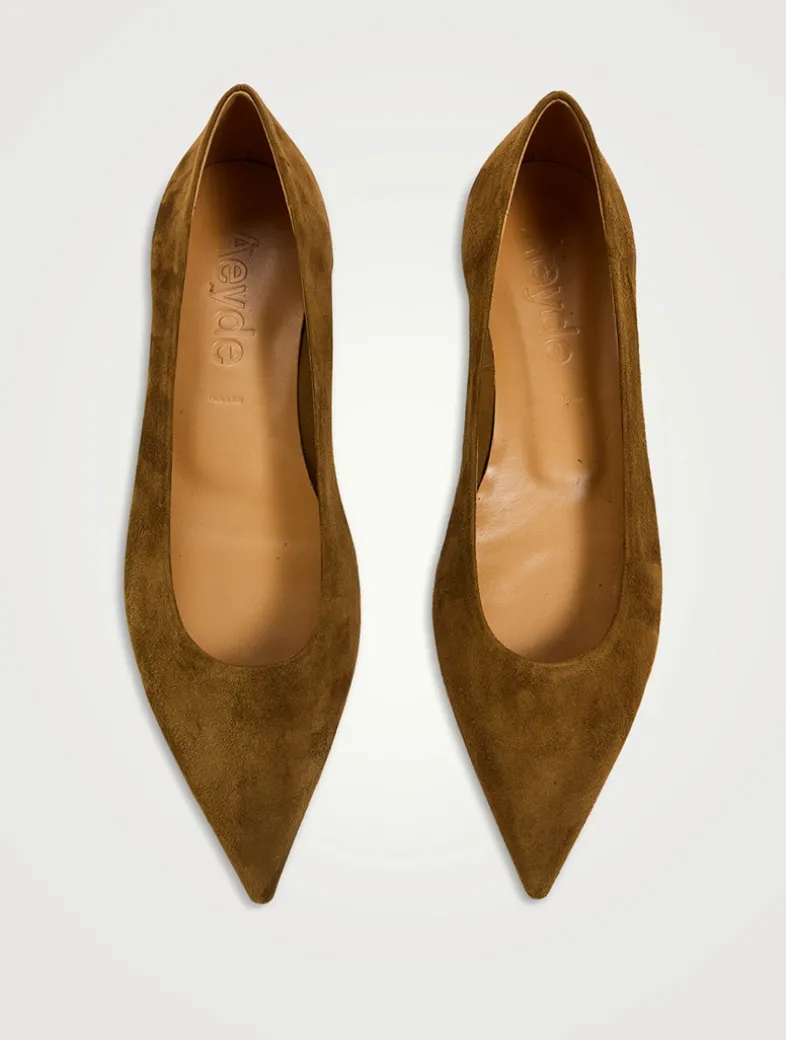 Made in Italy, these kid suede ballet flats are designed with medium-coverage vamps and contoured toplines that adhere comfortably to the feet.