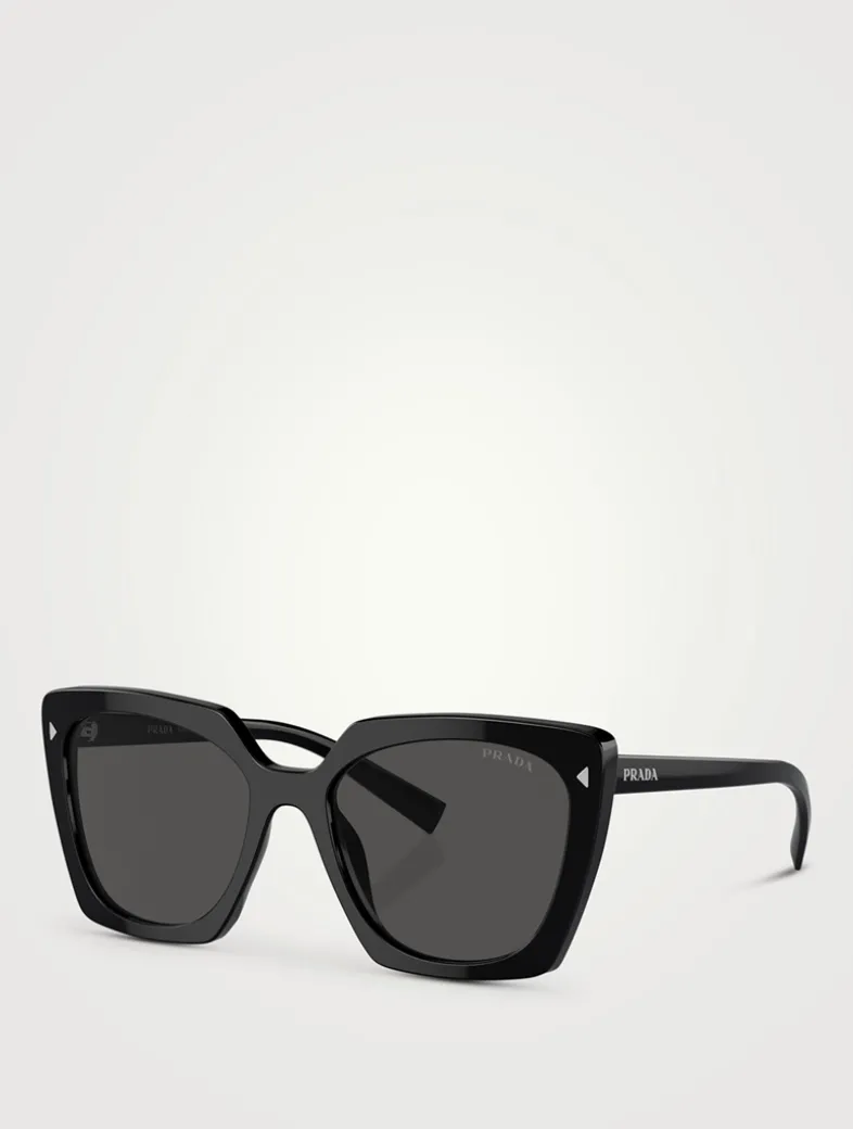 A geometric take on the classic cat-eye shape, these angular sunglasses are accented with studded hardware and subtle branding at the temples.