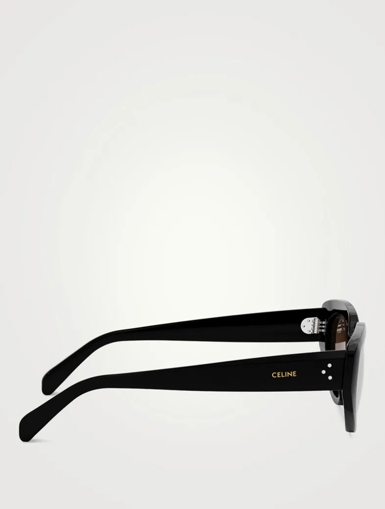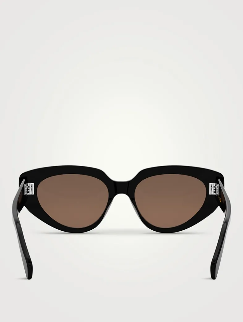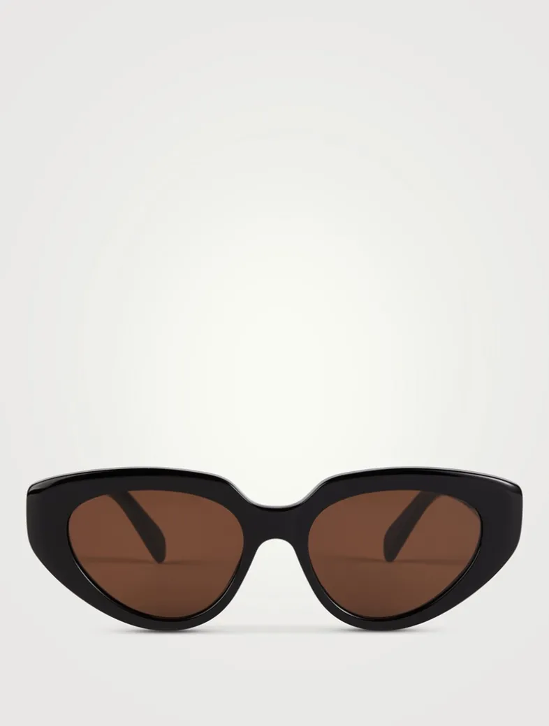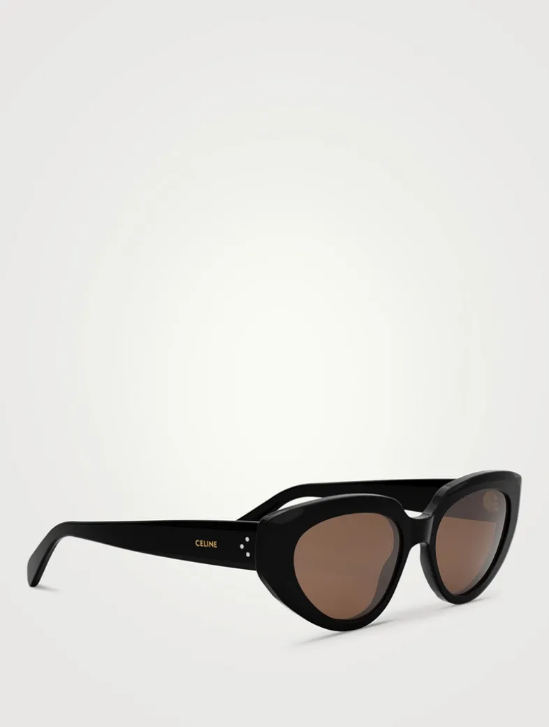 These elegant sunnies have a classic cat eye shape in acetate adorned with Celine’s logo and their signature three dots at the temples.