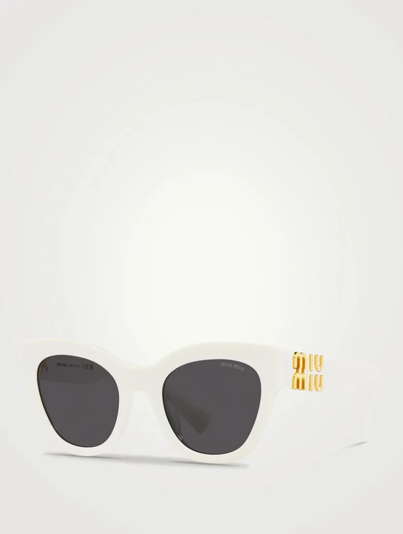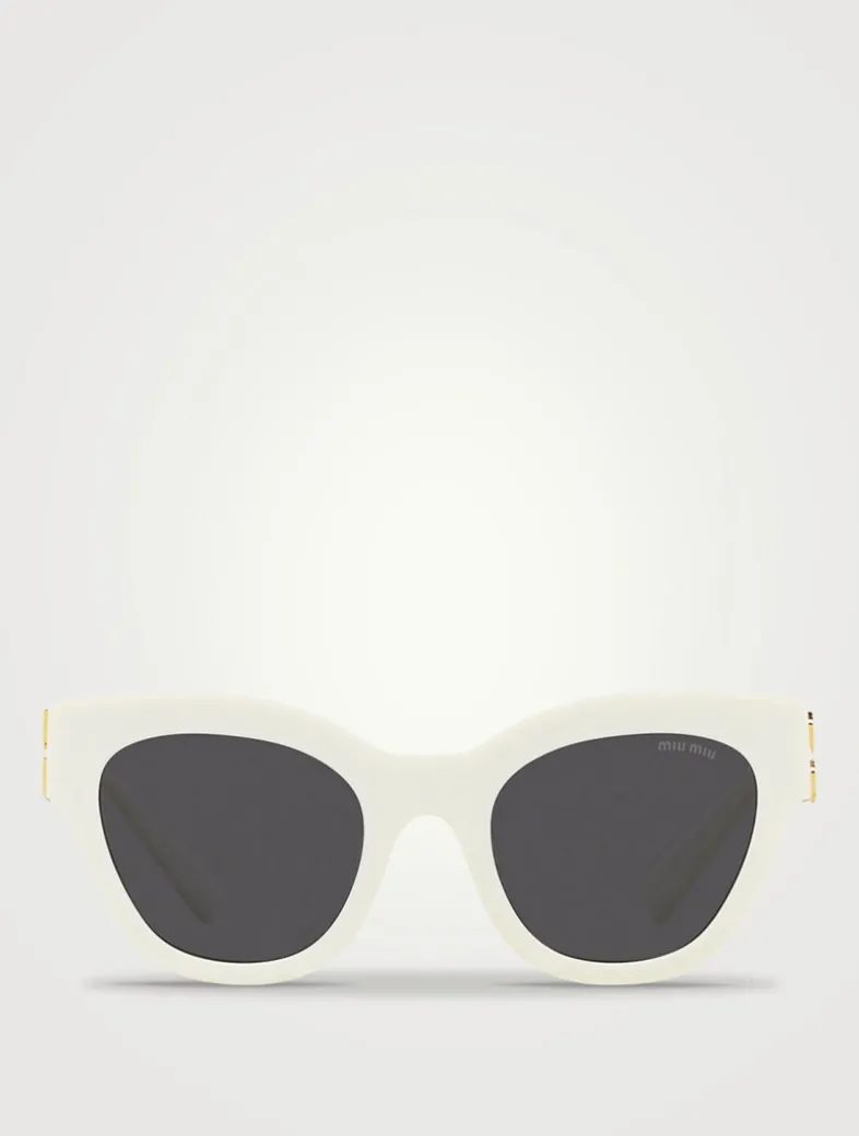 These acetate frames are characterized by their oversized cat-eye shape. The iconic vertical Miu Miu logo is integrated into the temple hinges.