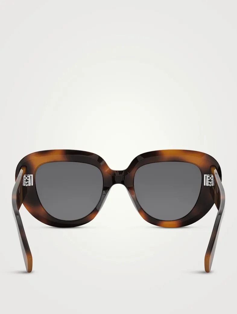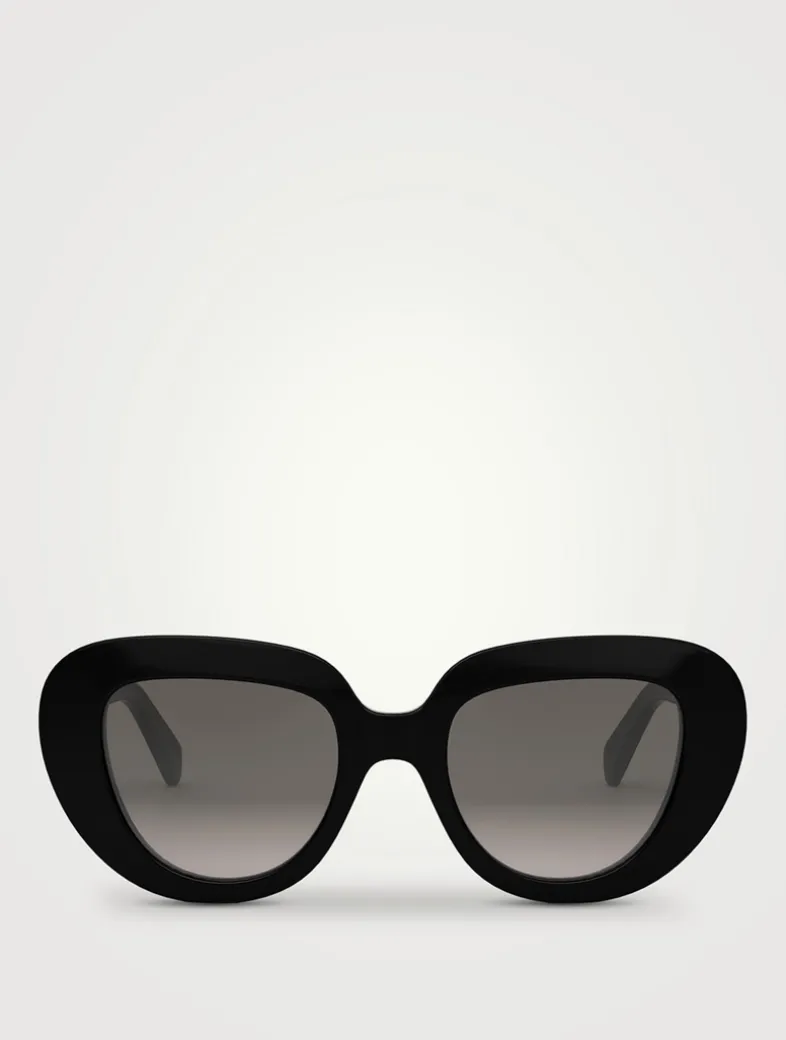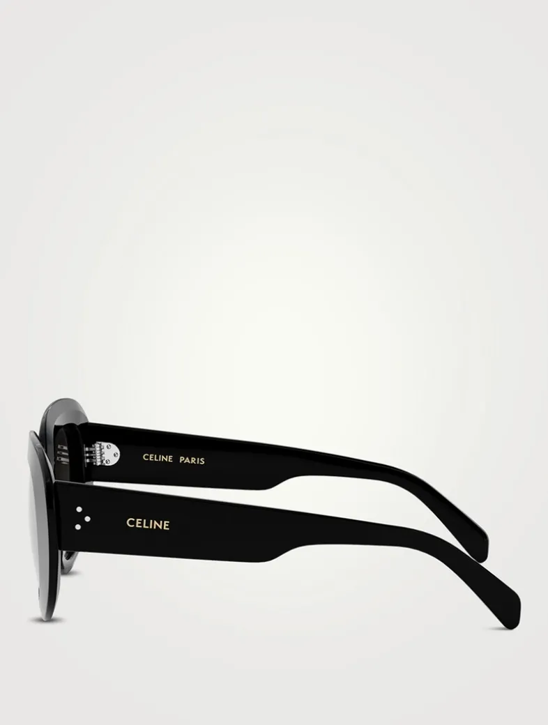 These oversized cat-eye sunglasses are finished with three dots, and CELINE underlacquered logo at both temples.