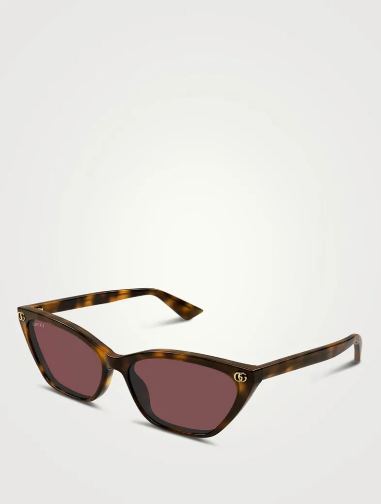 Featuring a sleek, elegant cat-eye shape, these sunglasses in recycled acetate are accented with Interlocking G details on the front corners.