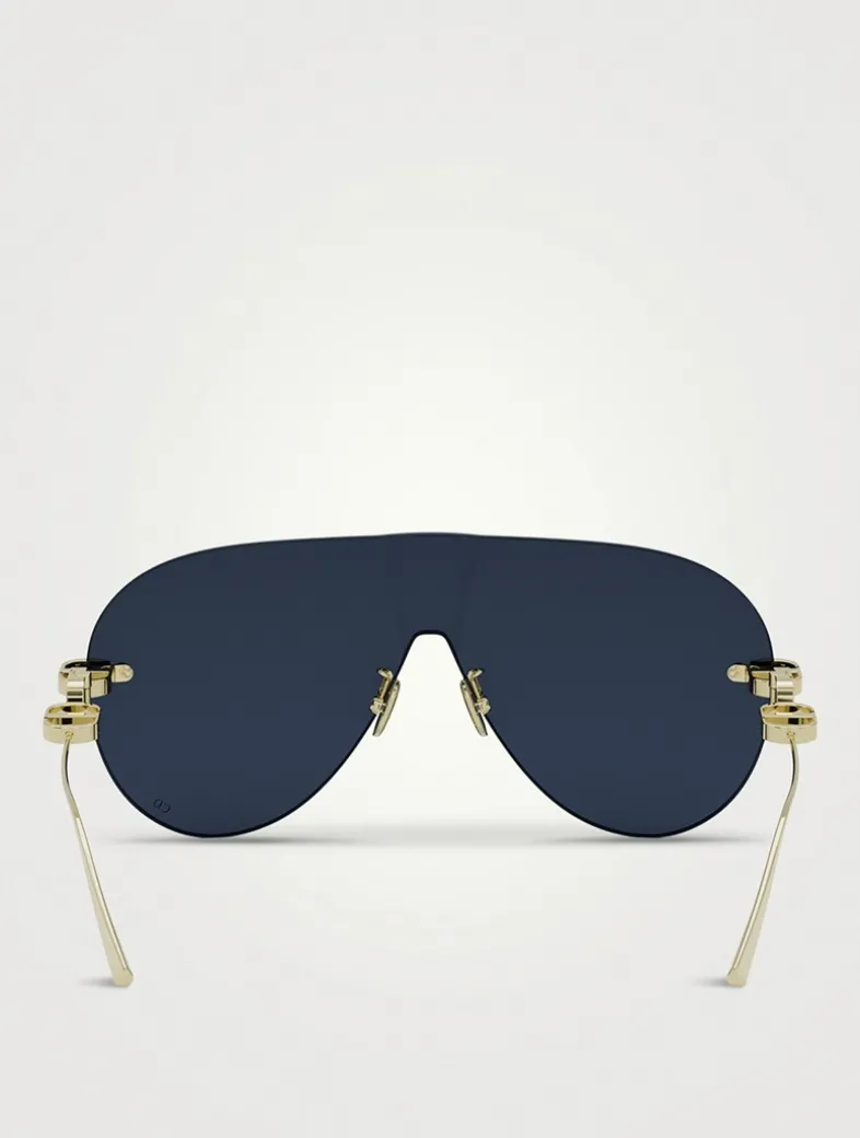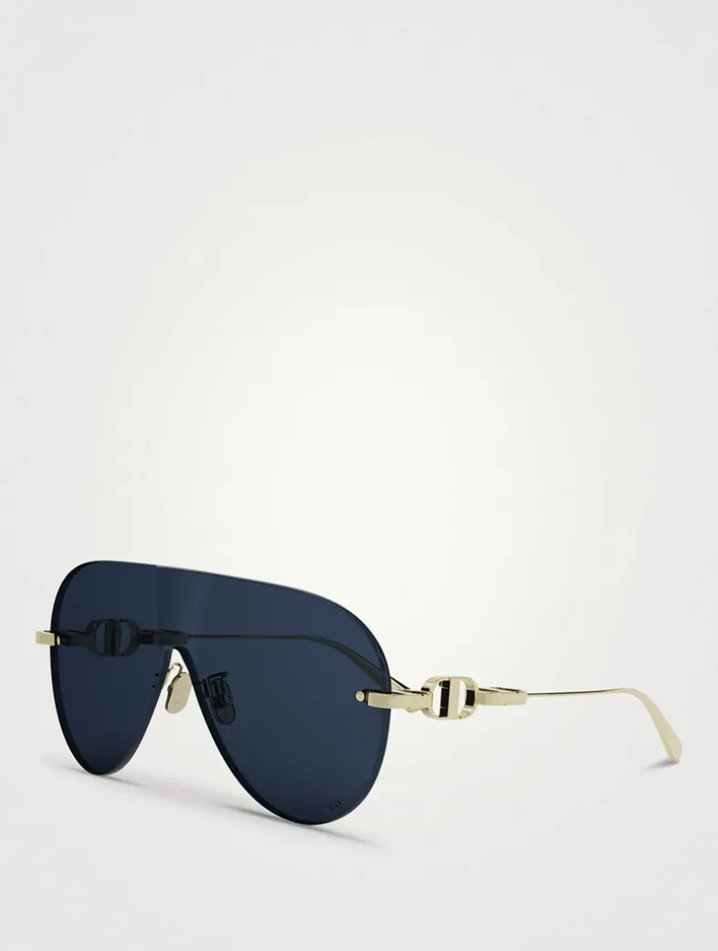 Inspired by fashion jewellery, the CD Chain line presents a new interpretation of the CD logo with a triple use on the hinge. The thin metal and rimless mask shape gives it a distinctive look.