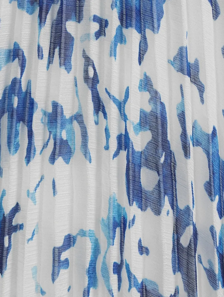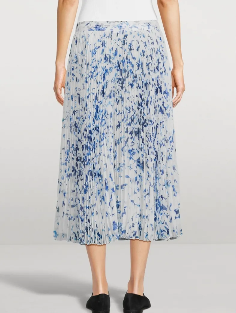 The Cecily Skirt is crafted in floral-printed crinkled chiffon. It is cut with an A-line silhouette, featuring fine pleats and a hem that finishes just below the knee.