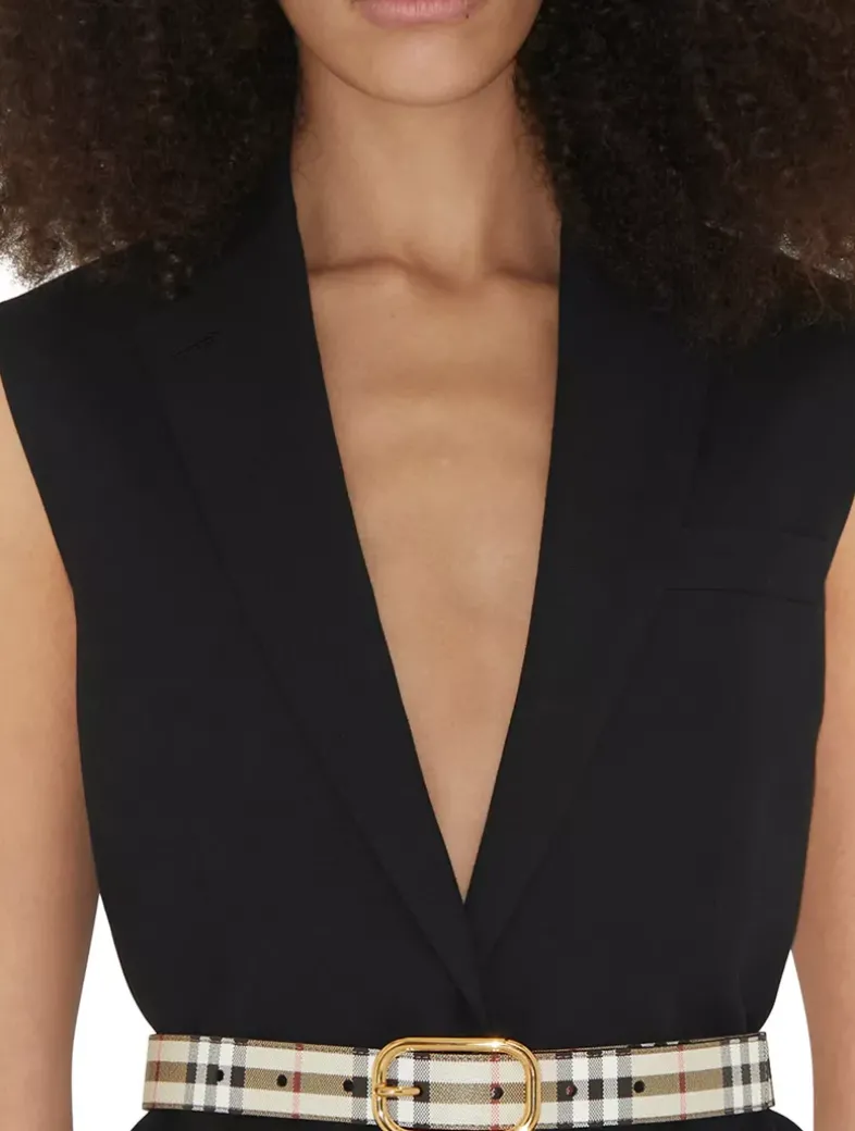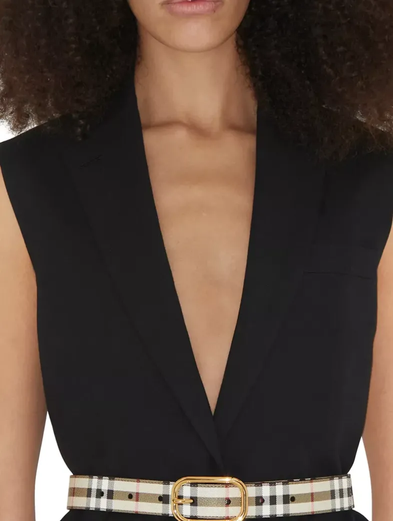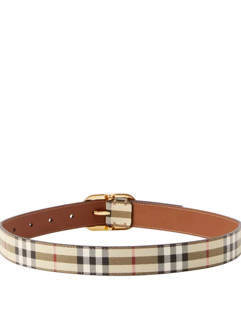 A belt made in Italy from a coated cotton blend printed with the Burberry Check. The design is lined in smooth leather and secured with a gold-plated buckle.