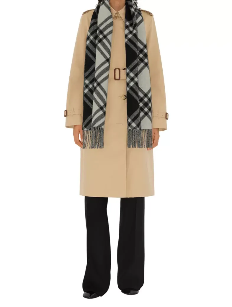 A scarf in double-faced cashmere, woven with a seasonal check at a 200-year-old Scottish mill. The fabric is washed in local spring water and receives an additional wash for an ultra-soft finish and raised nap.