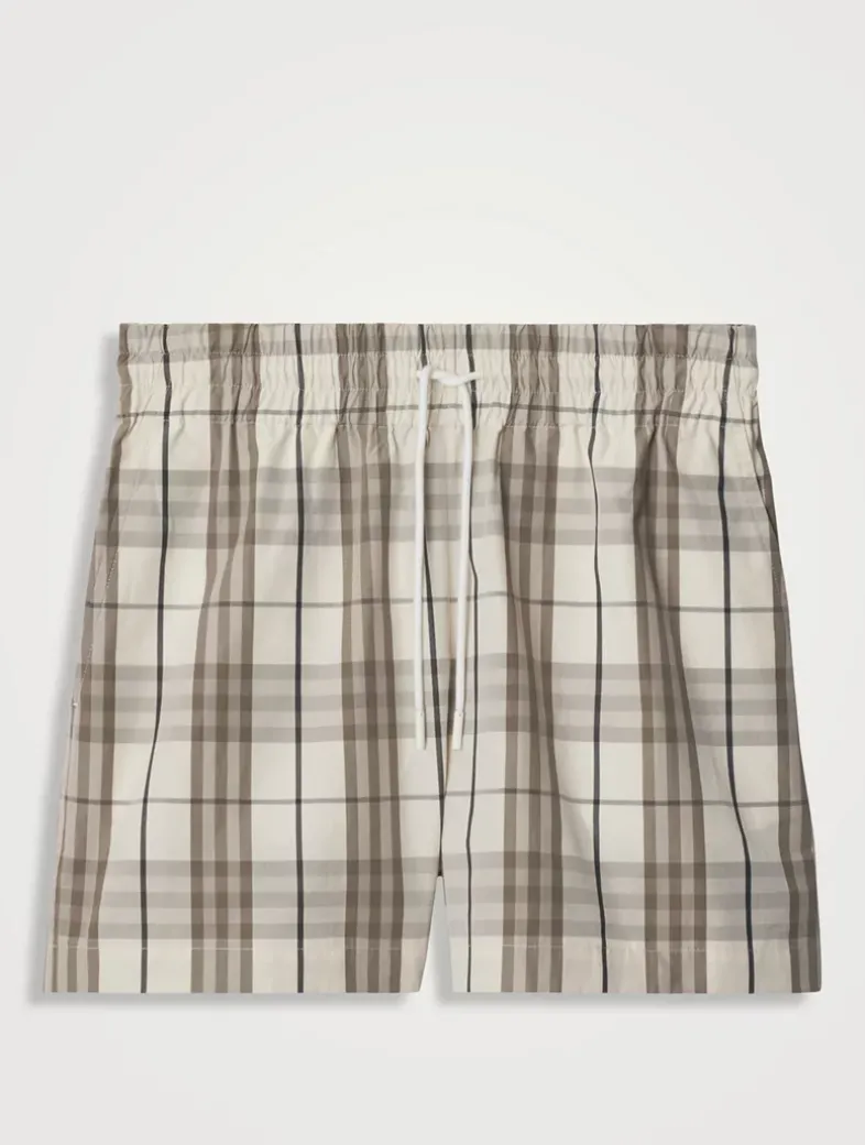 A pair of drawcord shorts in cotton, woven with a seasonal shade of Burberry Check. The design is cut to a regular fit.