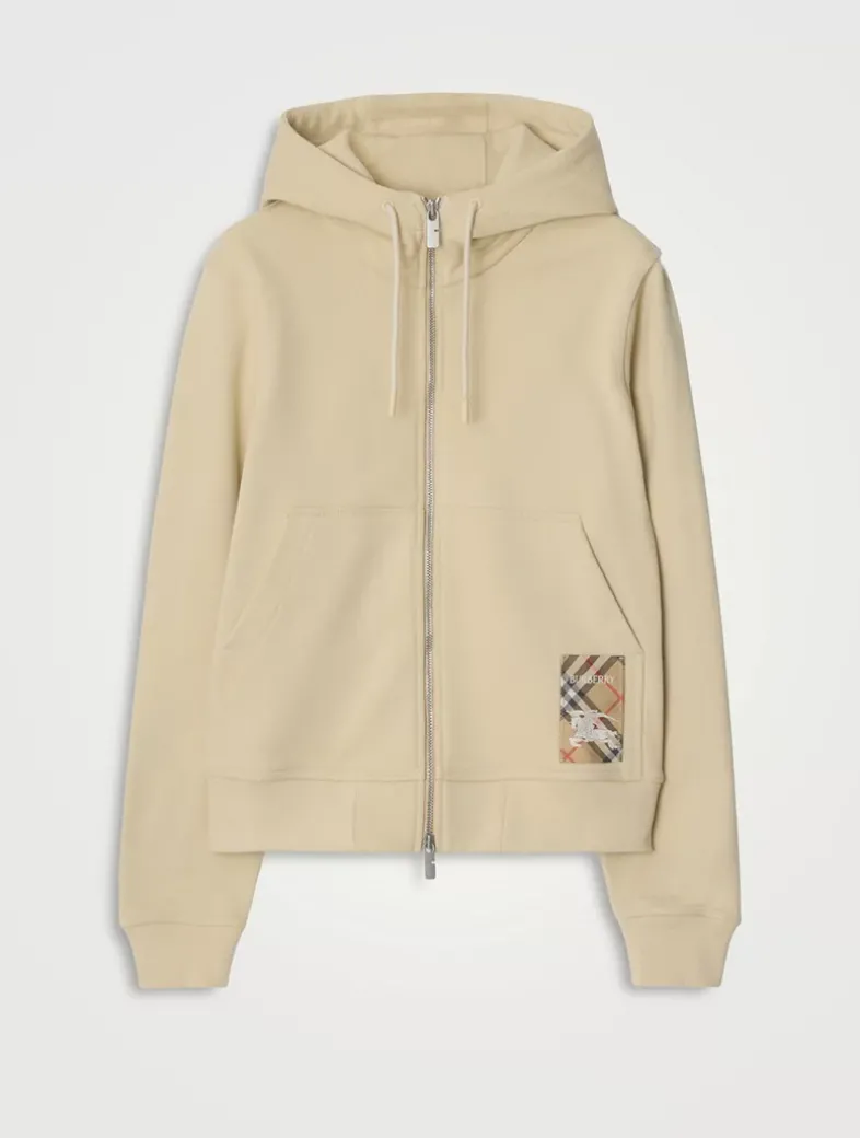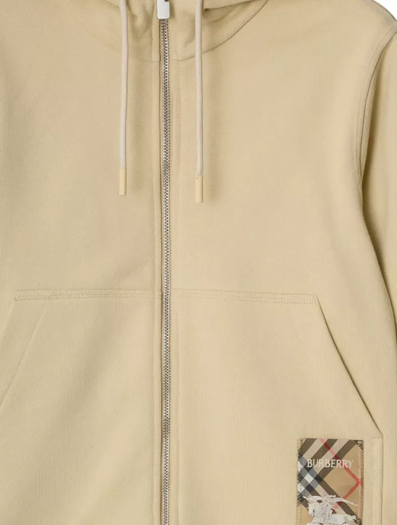 A zip hoodie in lightweight loop-back cotton. The style features an appliquéd patch woven with the Burberry Check, logo and Equestrian Knight Design.