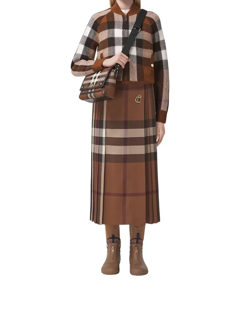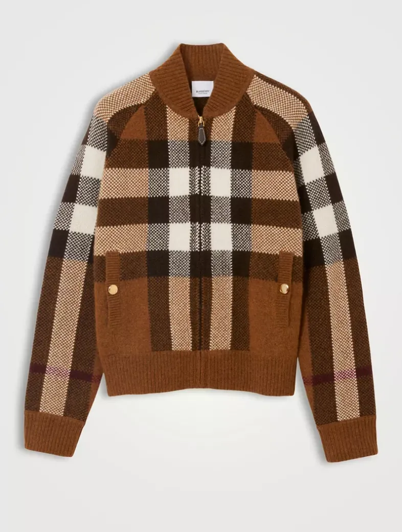 A bomber jacket made from wool cashmere, intarsia-knitted with the Burberry Check. The style is cut to a regular fit and features a topstitched leather zip pull.