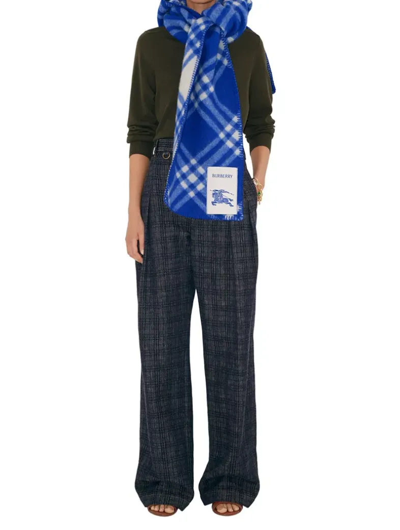A scarf in Norwegian-woven wool with a seasonal check. The hooded style features blanket stitching and is brushed for a soft finish.