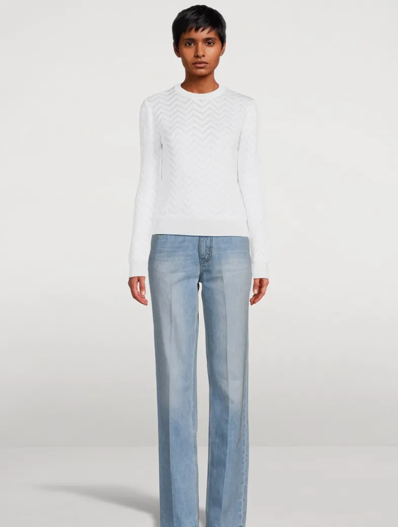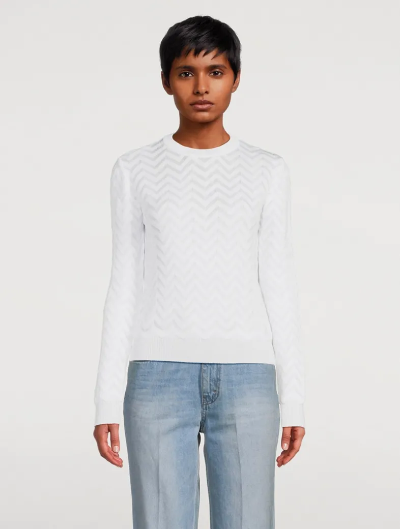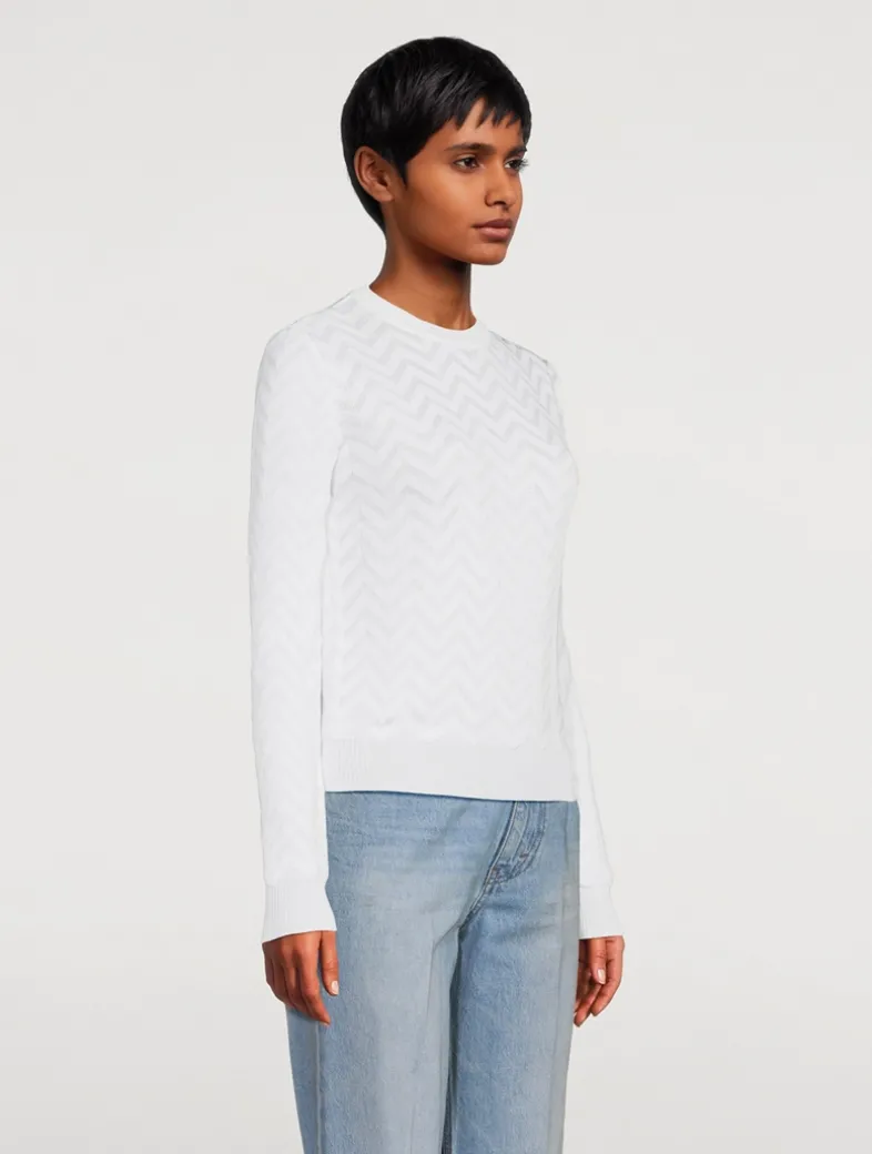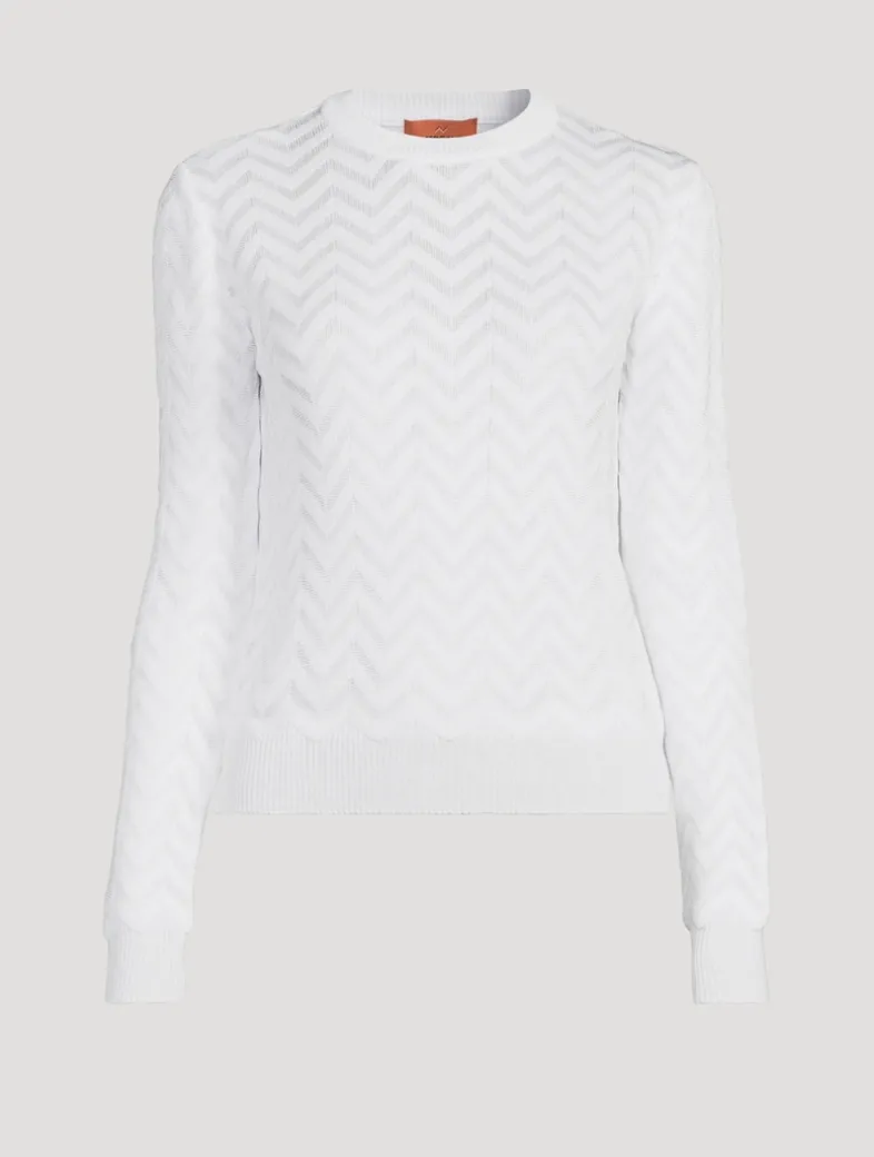 A classic chevron motif on this long-sleeve pullover nods to Missoni’s signature styling. It is knit from a lightweight cotton blend in a slim fit with ribbed trim.