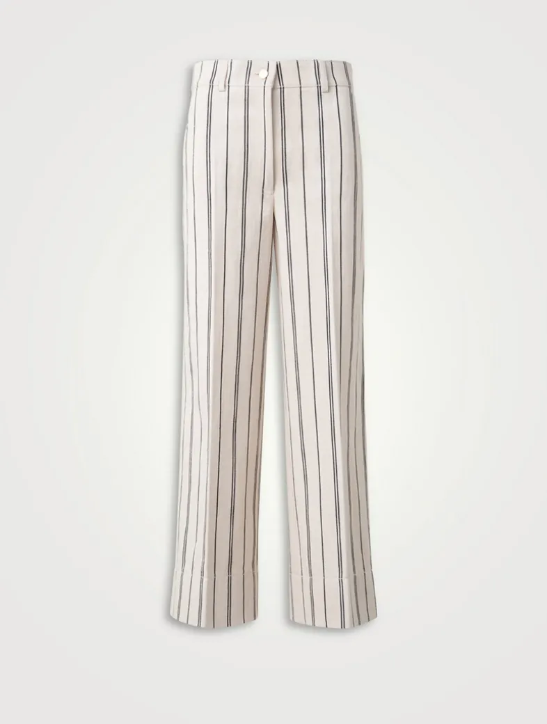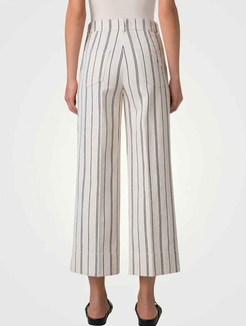 Crafted with washed cotton denim in a striped print, these high-rise jeans are detailed with slash front pockets, and patch pockets on the back. Cut with a cropped ankle length, these jeans are finished with a wide-leg silhouette.