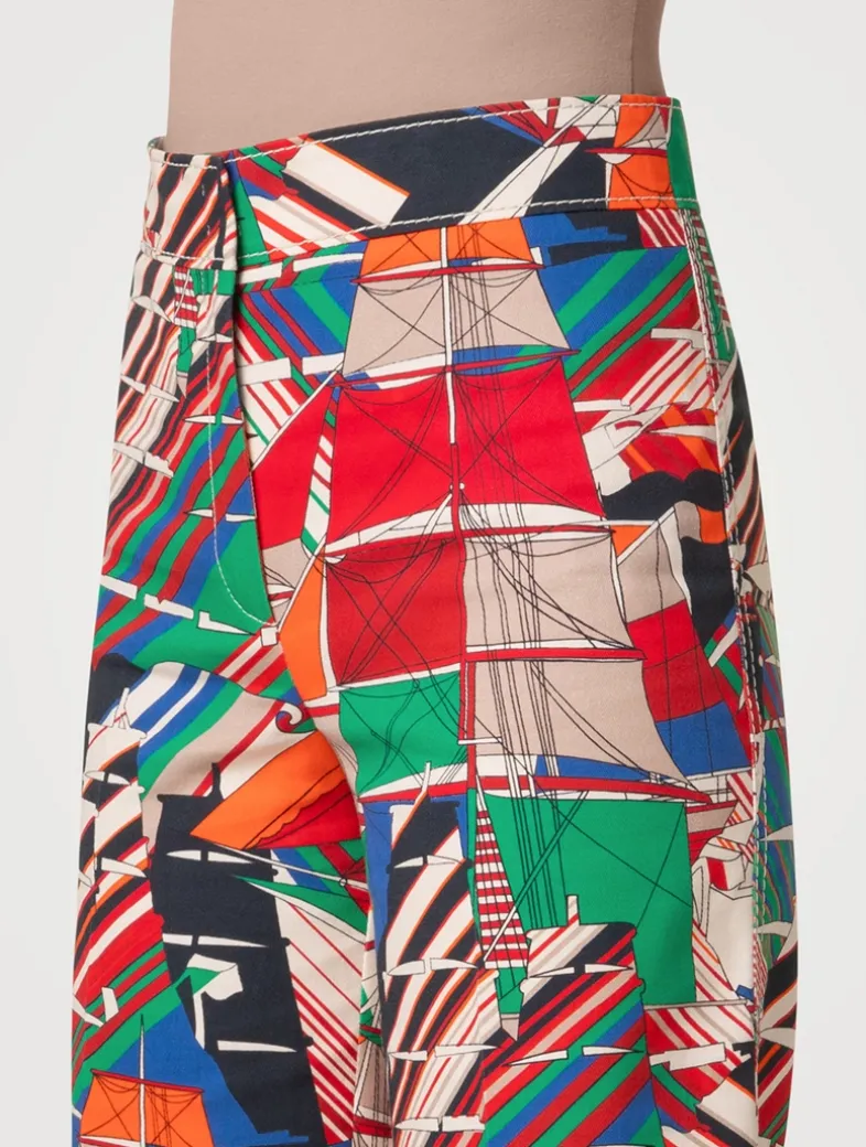 A vibrant Sea Clipper print lends a bold touch to these jeans. Crafted from cotton denim with a hint of stretch, they have a high-rise waist and wide straight legs with cropped hems.