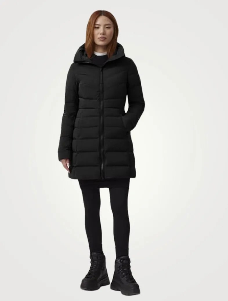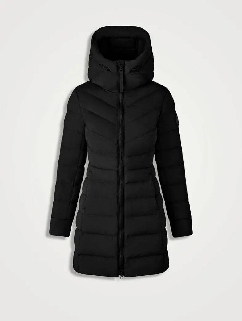 The Clair Coat is made with Aira—a two-way stretch fabric with a matte finish that’s designed to move with you. With an effortless silhouette, a mid-thigh length and ultra-flattering chevron quilting, the Clair will be your new favourite staple.