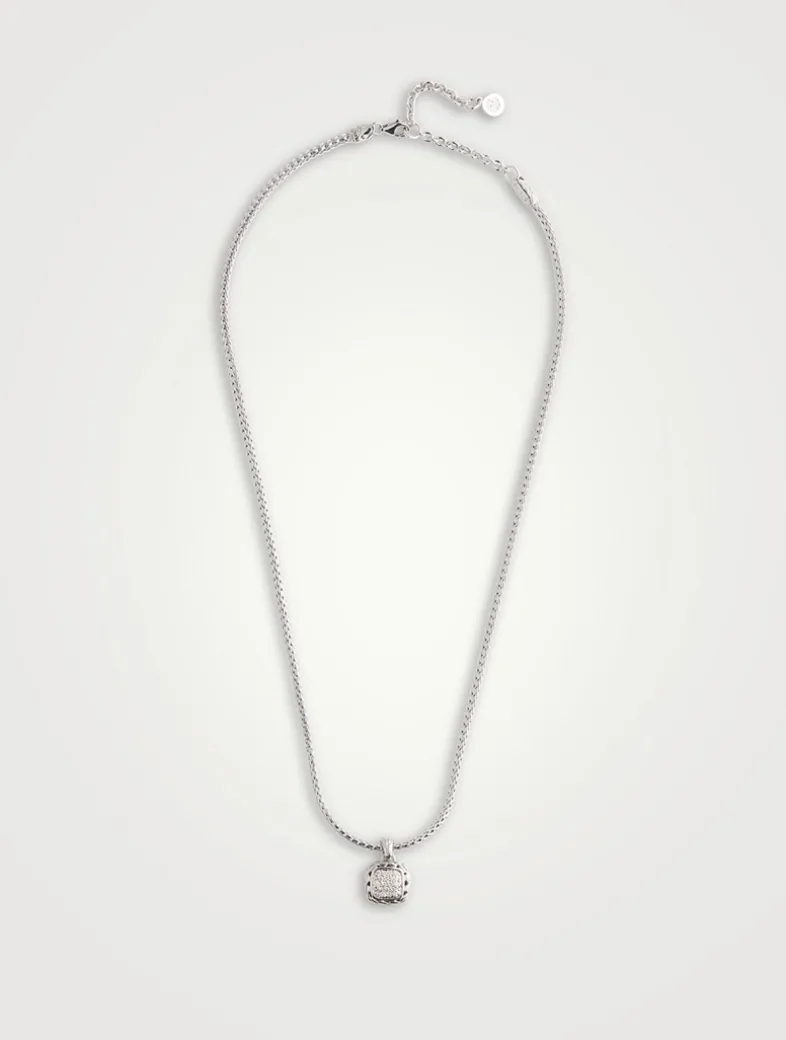 JOHN HARDY’s iconic Classic Chain Collection is a symbol of eternal human connection and community bond. This piece is features a square pendant encrusted with diamonds.