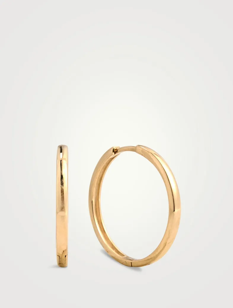 Designed to be worn with a stack of Anzie earrings, these minimal hoops are crafted of 14k gold. A clicker closure keeps them secure.