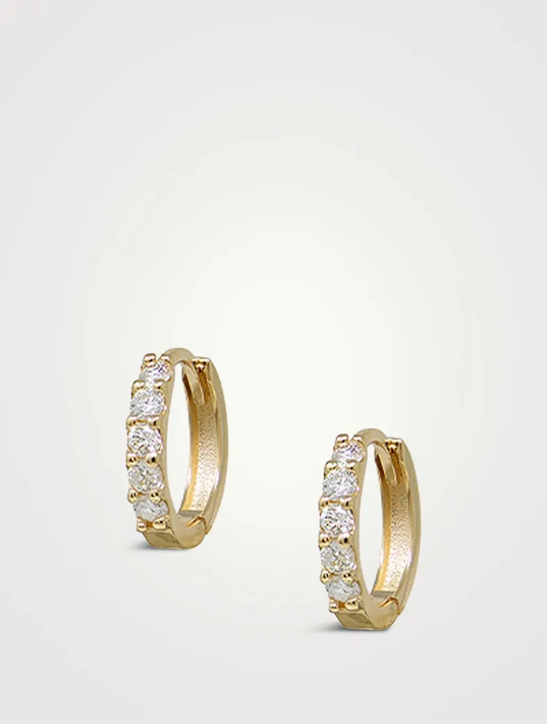 Classique 14K Gold Wide Pavé Mini Huggie Hoop Earring With Diamonds