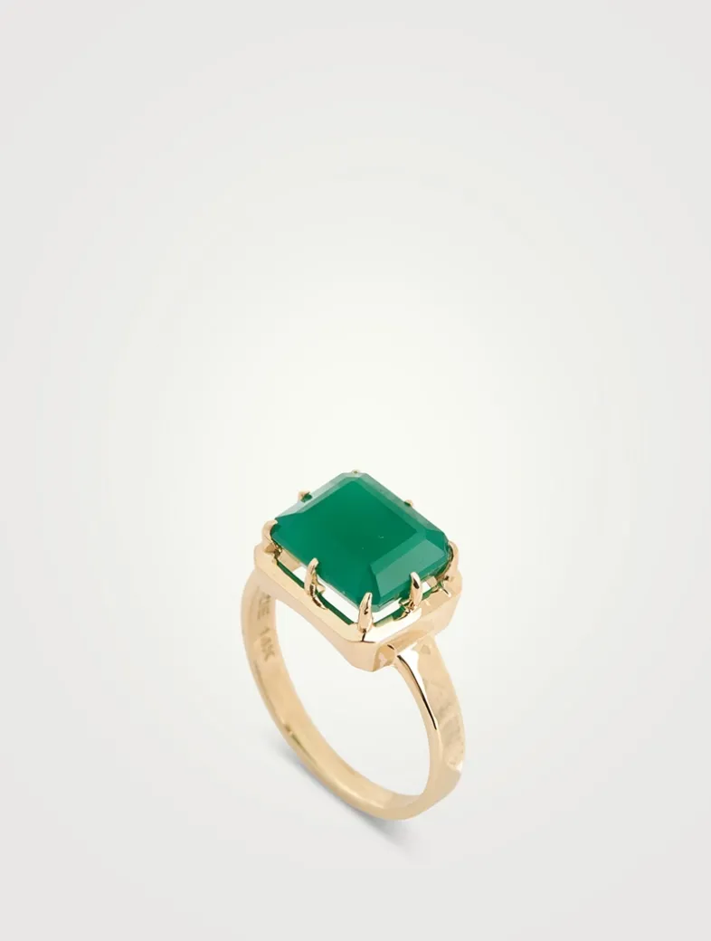 Cléo Daniela 14K Gold Emerald Cut Ring With Green Onyx