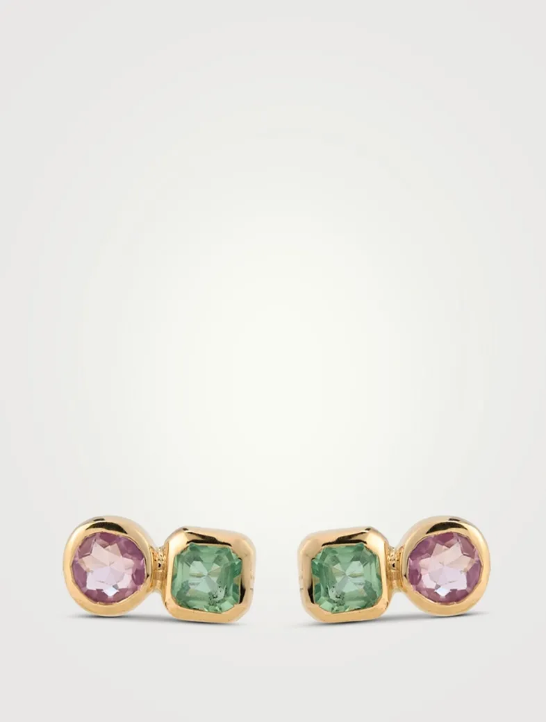 Cléo Jaeda 14K Gold Duo Stud Earrings With Sapphires