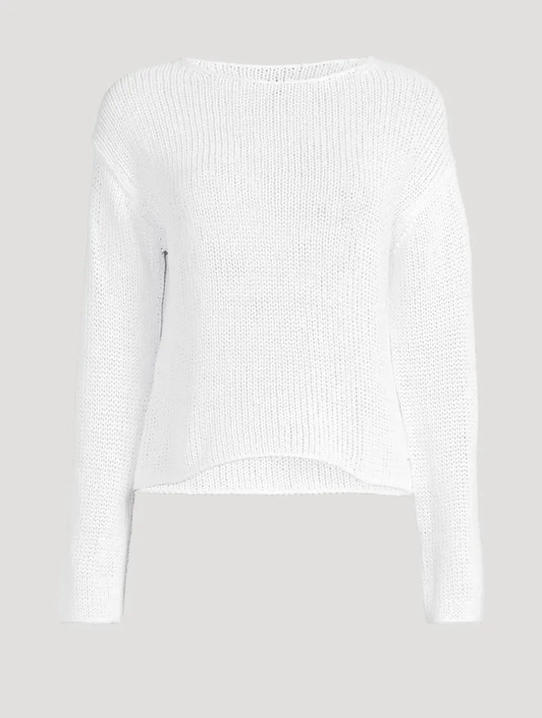 Designed with dropped shoulders for a relaxed fit, this everyday layer is free of trims for the cleanest possible finish. What distinguishes this sweater from others is the Italian cotton-blend yarn, which gives it an easy drape and a slightly waxy, silky feel on the skin.