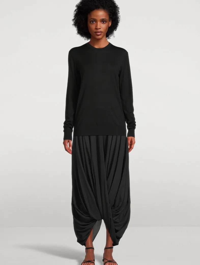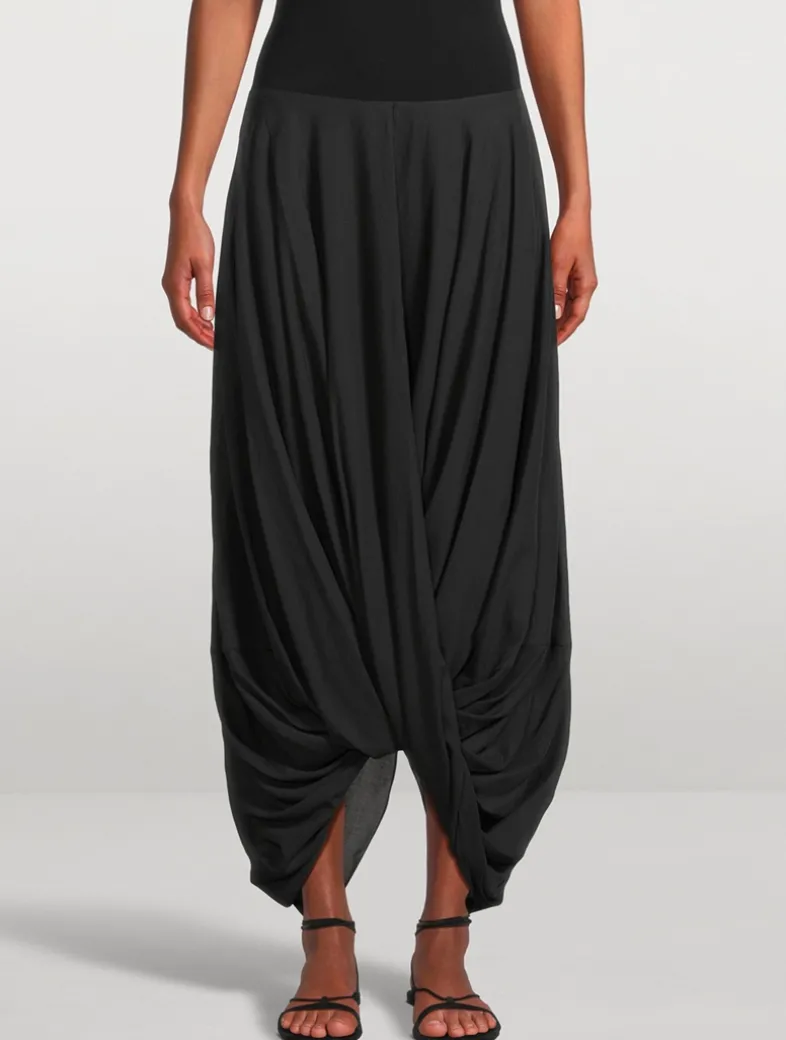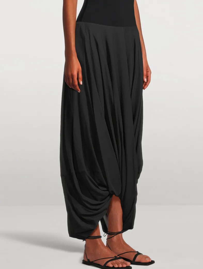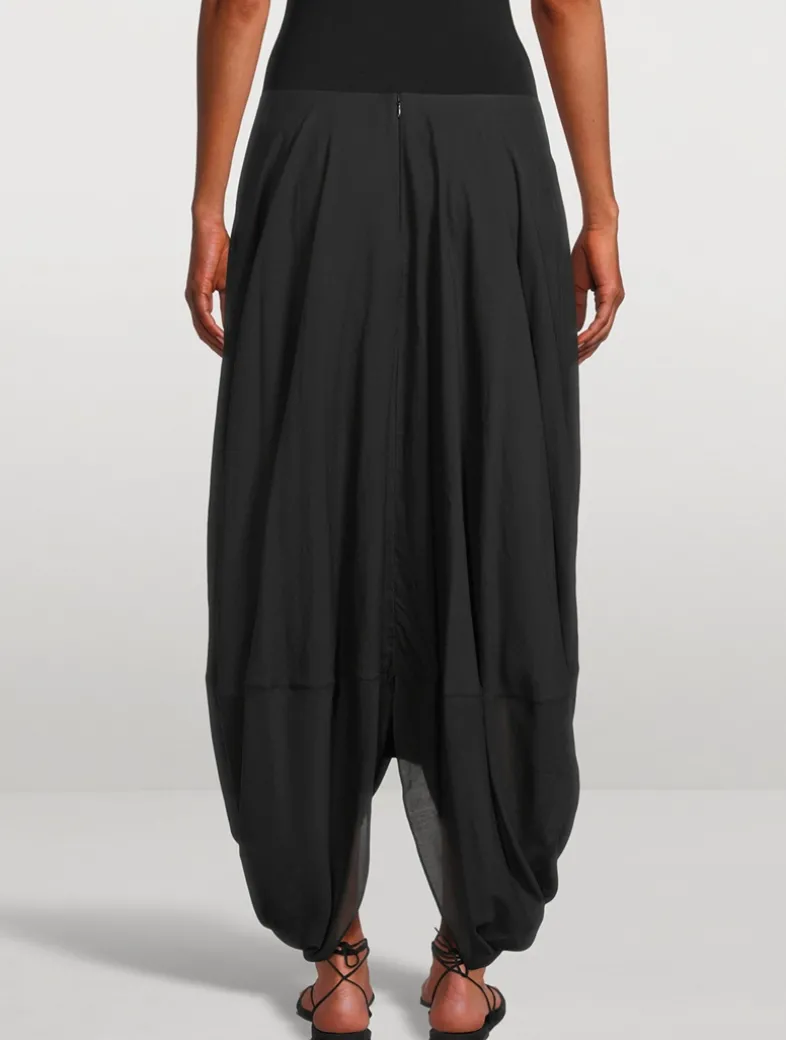 Exuding a sculptural look, this skirt is constructed from a diaphanous fabric as artfully overlapped and twisted panels creating a stunning cocoon silhouette.
