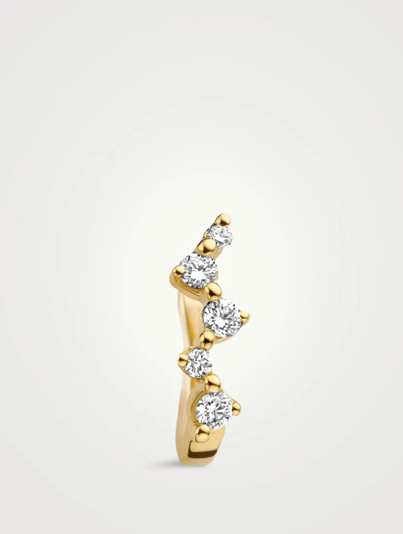 This zigzag-shaped earring spotlights five different shaped lab grown diamonds. Proving asymmetrical design is beautiful, the Comet blurs the lines between a clip and hoop earring.