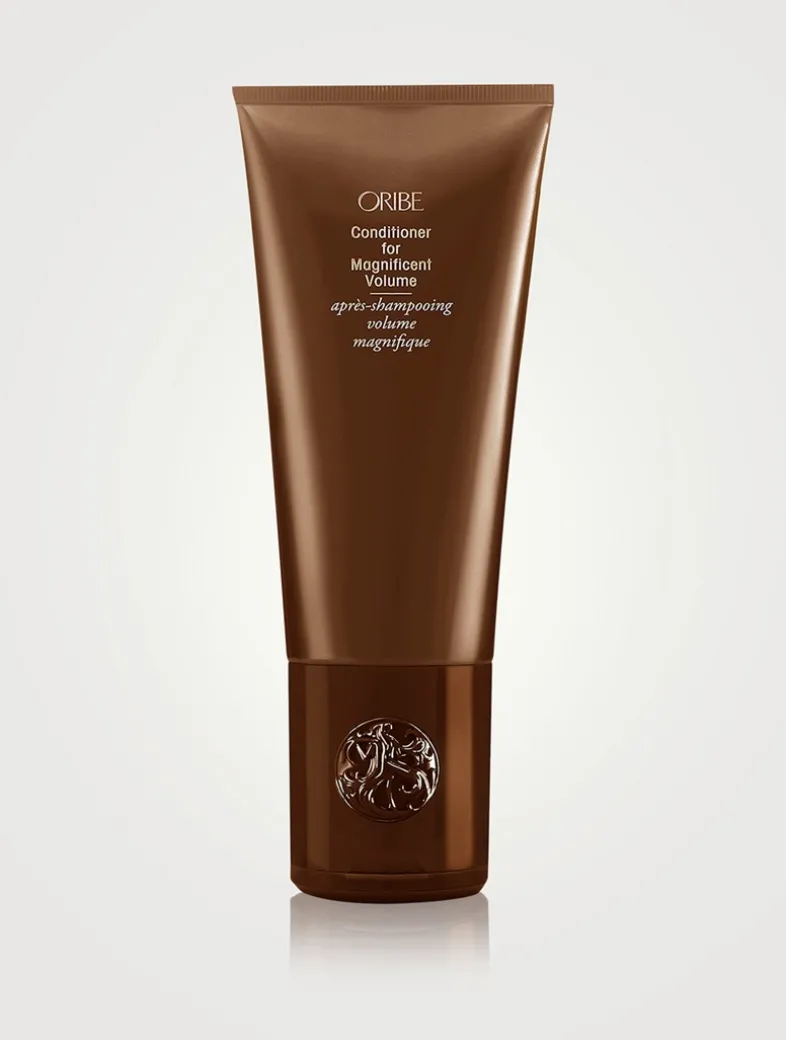 Because you should always think big. Oribe Conditioner for Magnificent Volume is a body-building gel-cream moisturizer that provides uplifting support for effortless combing, styling and glamourizing.