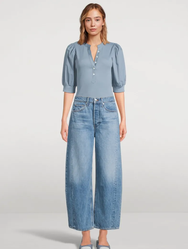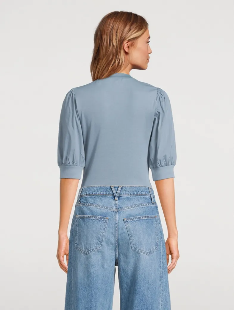 The Coralee is a feminine take on the classic Henley. Elbow-length puffed sleeves exude soft romance while a relaxed fit and shortened five-button placket add an ease.