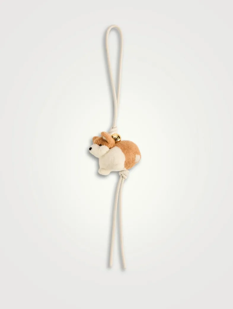 Corgi charm in plush felt with a looped calfskin strap and an Anagram dice in a gold-tone finish.