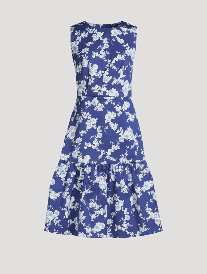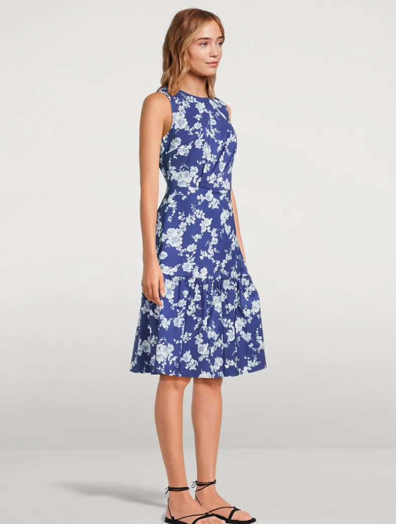 A vintage-inspired floral print defines this sleeveless dress, which is cut from stretch-cotton faille with a tiered hem and pin-tuck detailing at the waist.