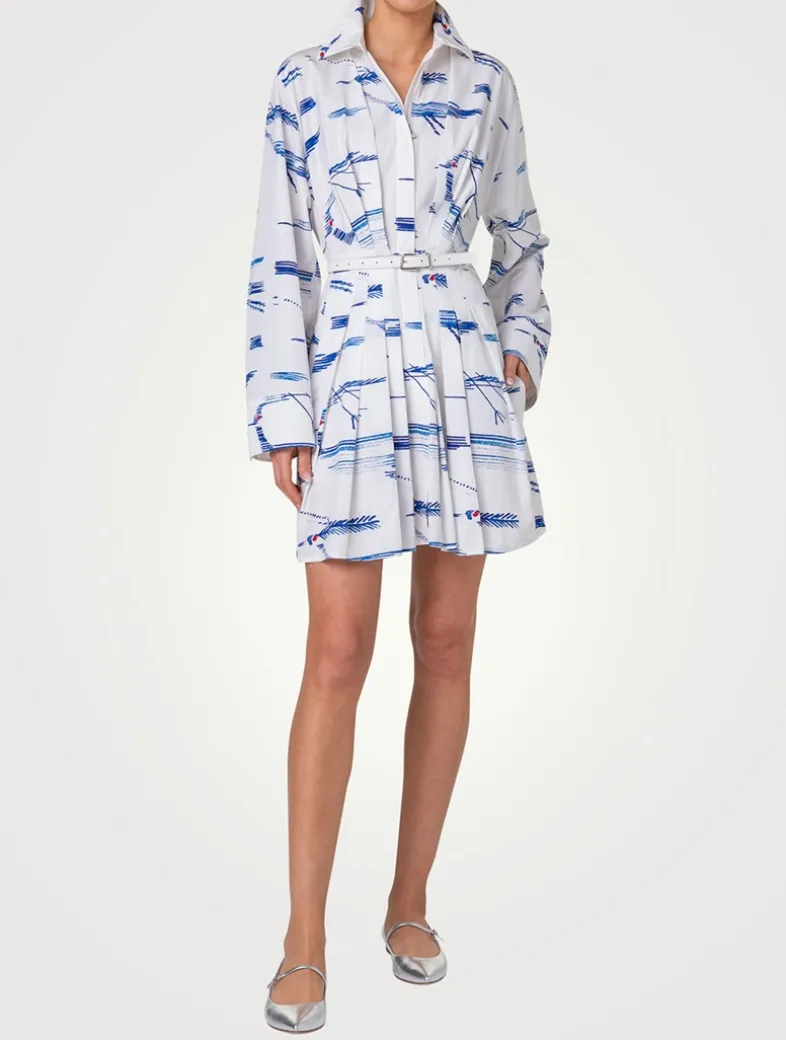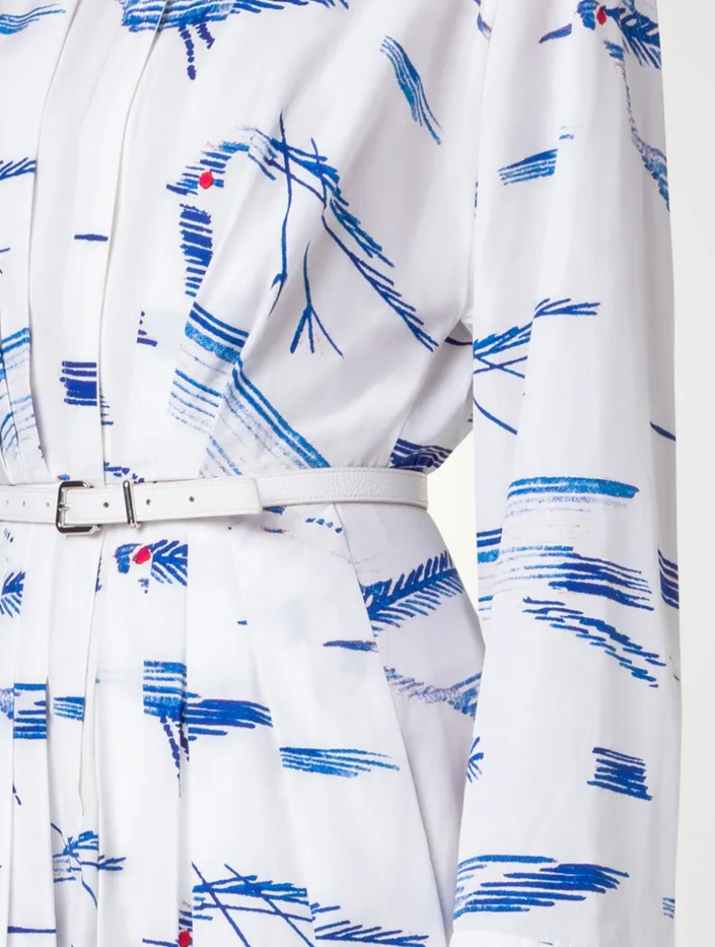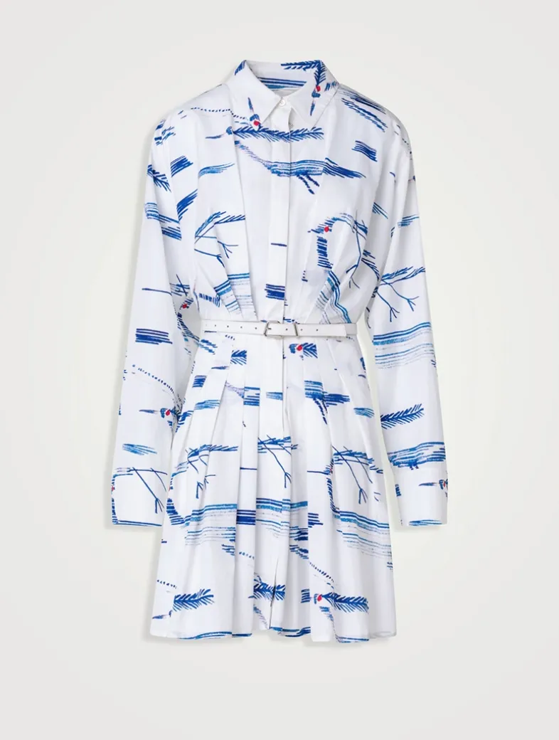 Crafted from crisp cotton, this pleated mini dress is comfortable, yet effortlessly elegant. Cut in a relaxed silhouette, its minimalist design features a concealed zip placket and a shirt collar, while a buckled belt cinches the waist. With an abstract Kasuri Birds motif, it is a modern style – contemporary, understated, exceptional.